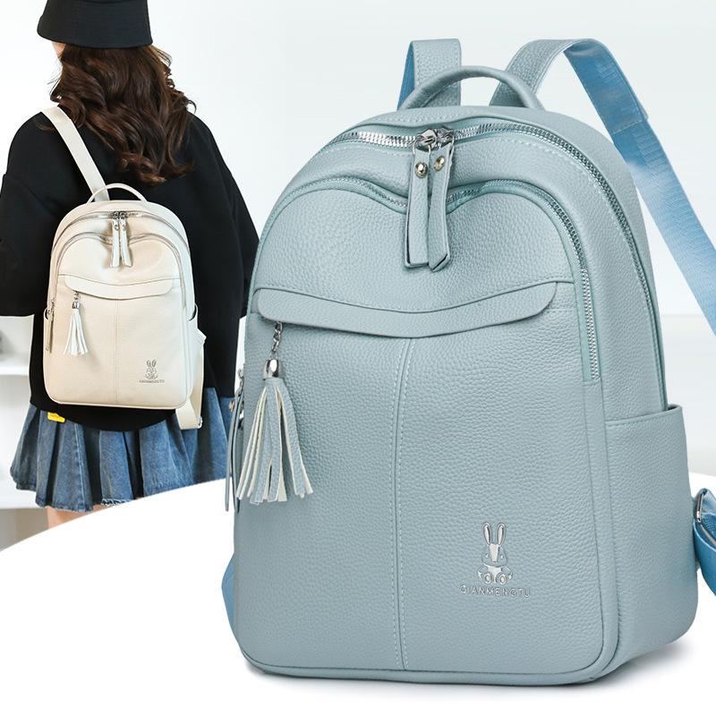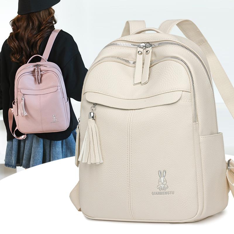 Мягкий кожаный рюкзак с бахромой женский новый модный повседневный рюкзак большой вместимости дорожная сумка женская на плечо трендовая сумка