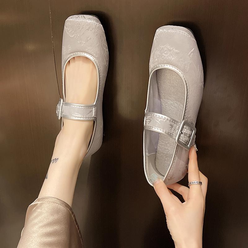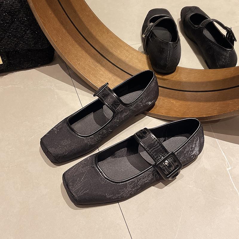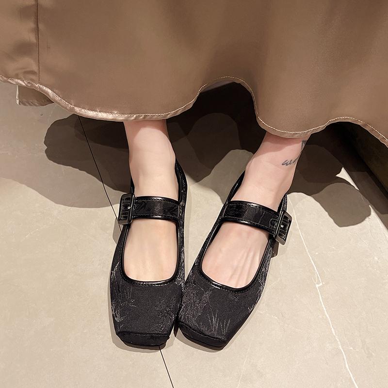 Модная весенняя новая обувь на низком каблуке, женские туфли с квадратным носком и мелким вырезом, с ремешком на одной пряжке, на мягкой подошве, нескользящие, с низким верхом