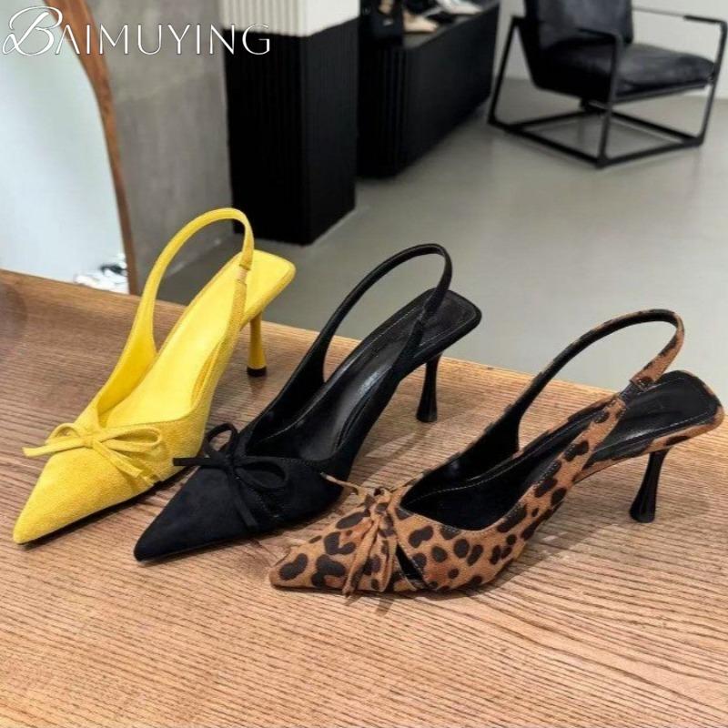 Fashion Leopard Sexy Pointed Toe High Heels Shoes Women Sandals Bow Slippers Slingback 2025 Summer Trend Dress Woman Brand Sandalias