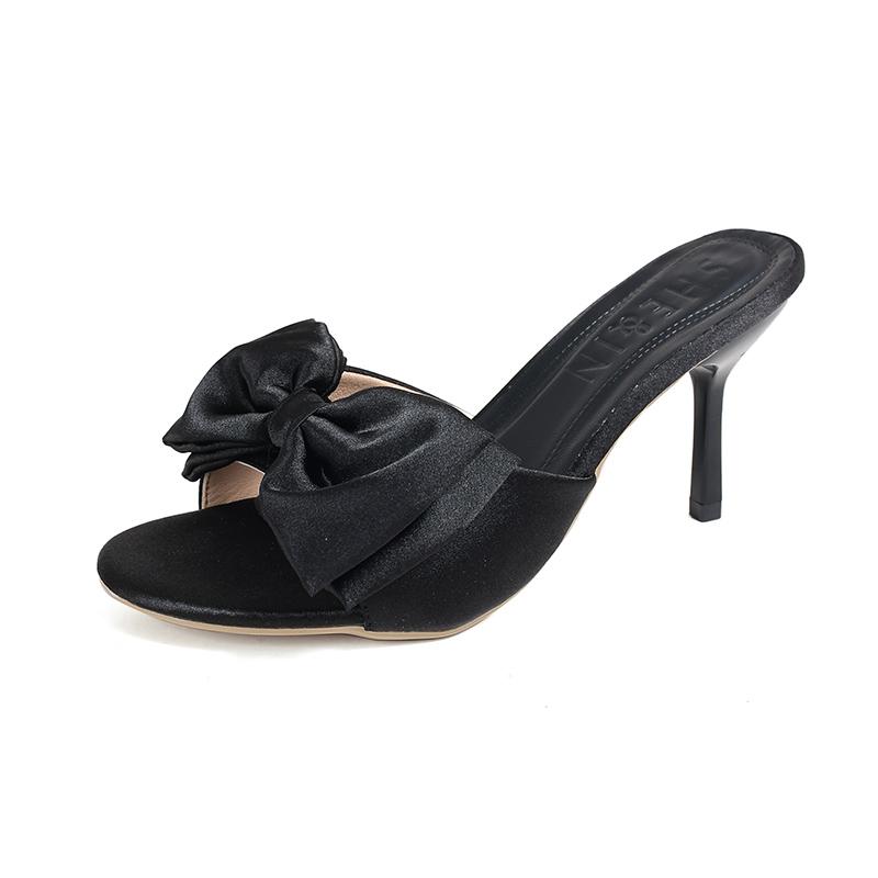 Модные туфли-стилетто с открытым носком и одним бантом, женские летние новинки для улицы, с круглым носком, противоскользящие, износостойкие, на высоком каблуке