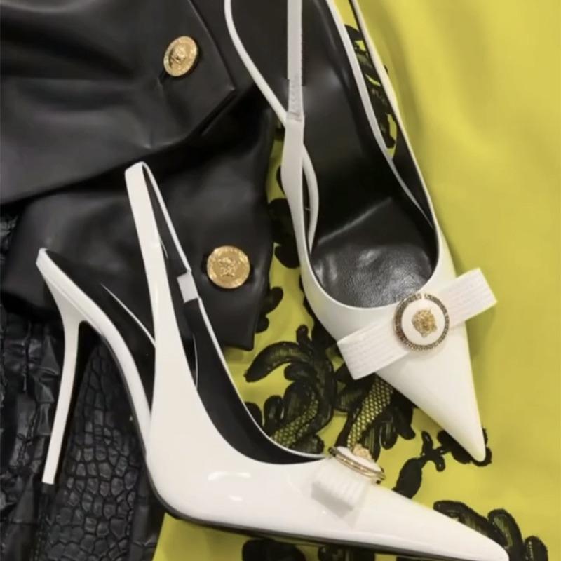 Модные Женские Туфли на Высоком Тонком Каблуке Ручной Работы Размера 32-45 Французский Стиль Острый Носок Бант Низкий Вырез Бутиковая Обувь Лето