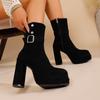 Мода Винтаж Платформа Толстый Высокий Каблук Женские Ботильоны Мода Боковая Молния Осень Зима Женские Вестерн Короткие Ботильоны Zapatos De Mujer
