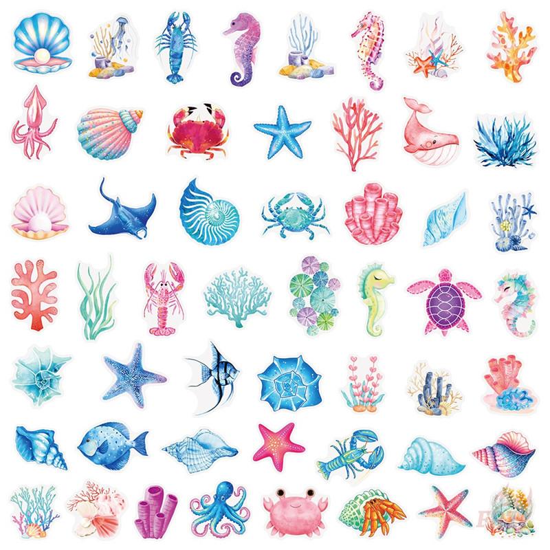 50Pcs/Set Watercolor Marines Animals Series 01 PET Stickers Waterproof DIY Fashion Doodle Decals Stickers