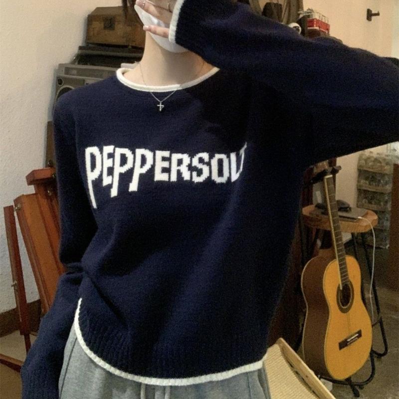 Свитер с круглым вырезом и надписью для женщин в непринужденном осенне-зимнем стиле, модный вязаный свитер-топ для миниатюрных людей