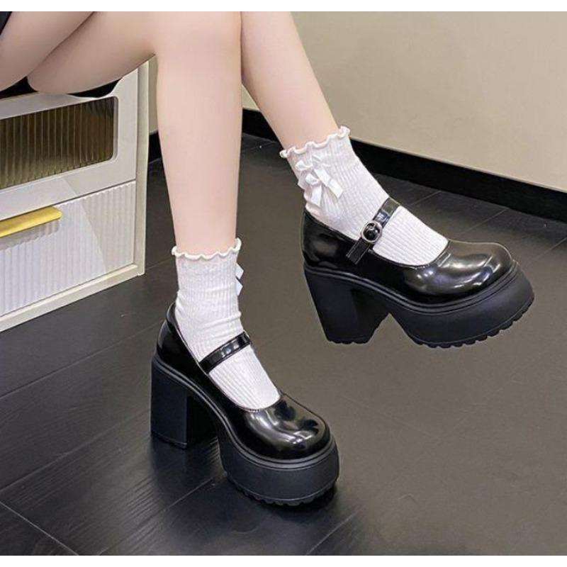Модные белые туфли-лодочки на очень высоком каблуке Мэри Джейн для женщин, лакированная кожа, массивная платформа, женские готические туфли с ремешком и пряжкой, обувь Лолиты