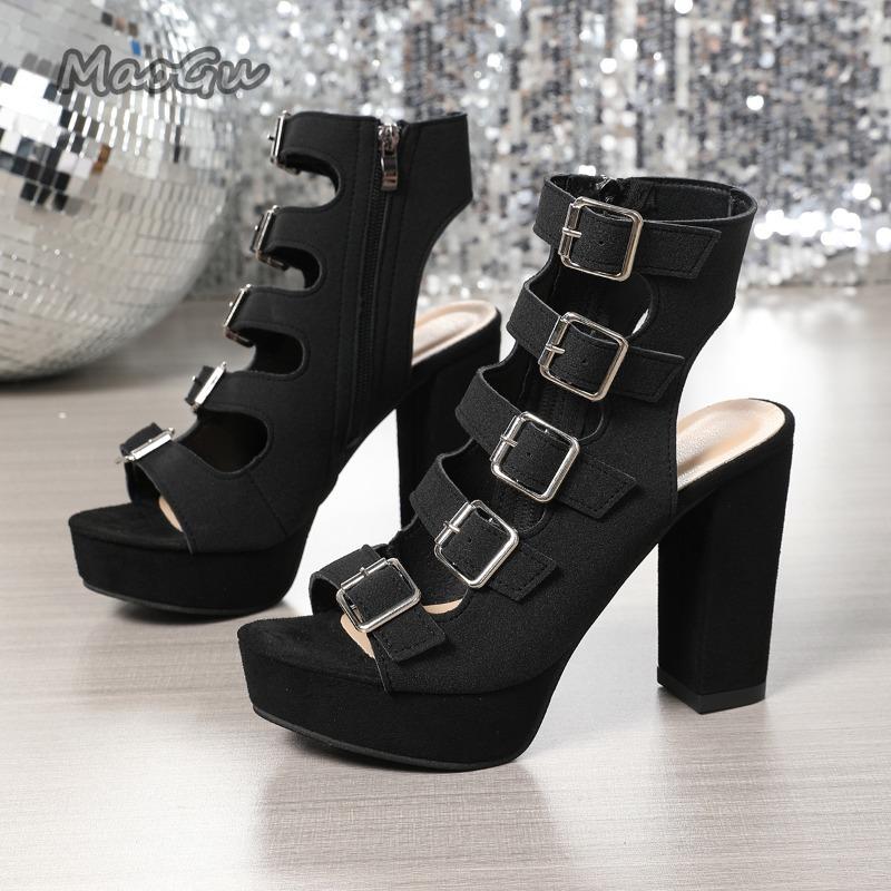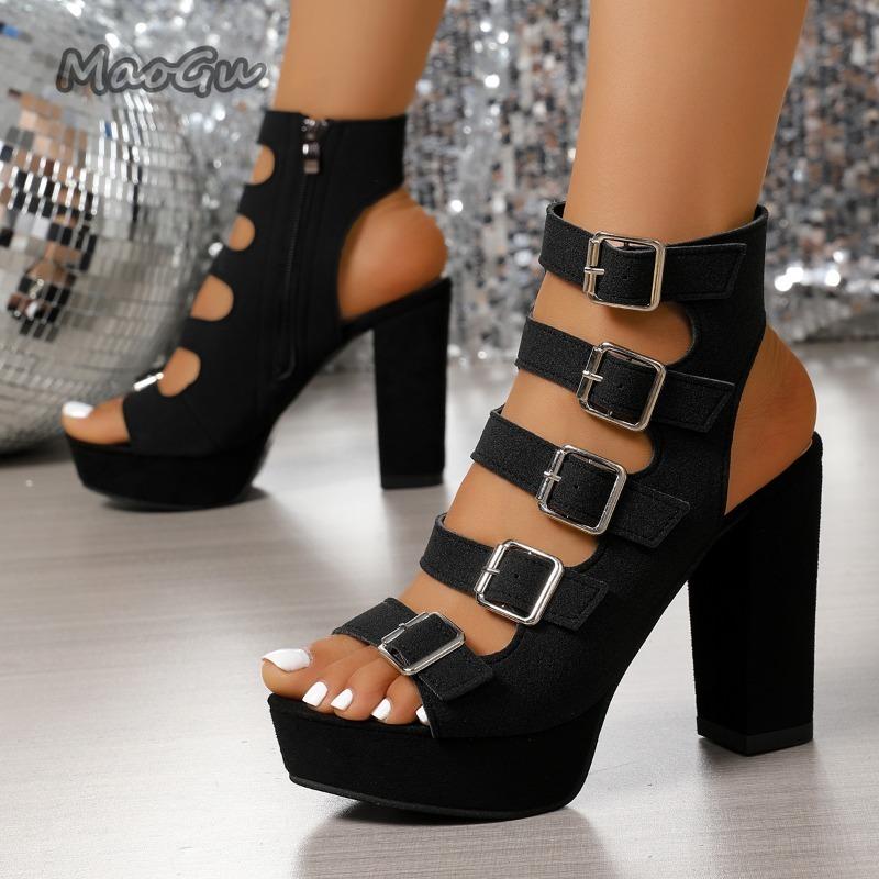 Мода 2025 Лето Женские Босоножки на Высоком Каблуке Ремешки с Пряжками Ажурный Открытый Носок Женская Обувь Модная Верхняя Одежда Черный Размер35 42 Zapatos De Mujer