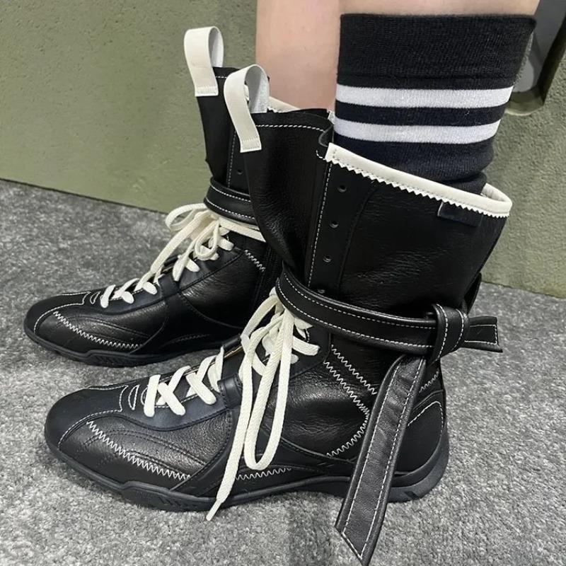 Мода Модные Боксерки до середины икры из мягкой кожи Женские Горячая распродажа сезона Новый ретро-стиль Увеличенная высота Подкладка из ПУ Плоская подошва — купить товар онлайн с бесплатной доставкой по всему миру!