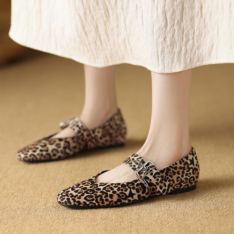 Модные женские туфли на плоской подошве, лодочки, леопардовые, милые Мэри Джейн, низкий каблук 1 см, повседневные лоферы, кожаные, с пряжками, мокасины, женская повседневная обувь