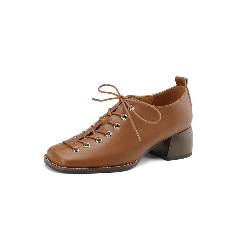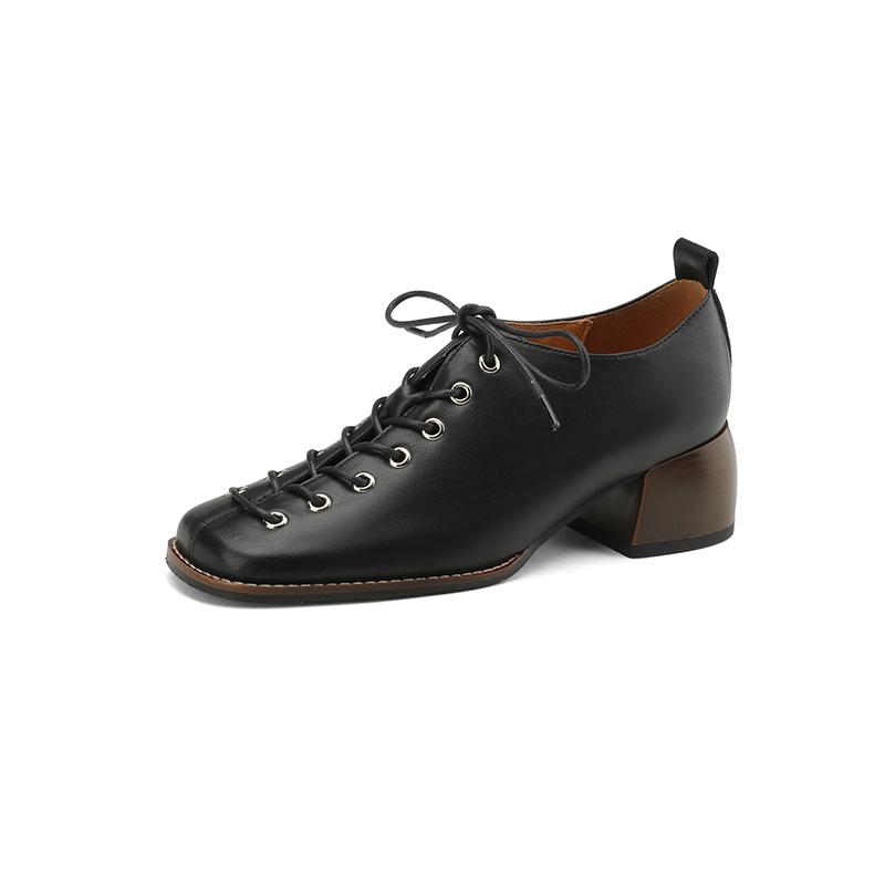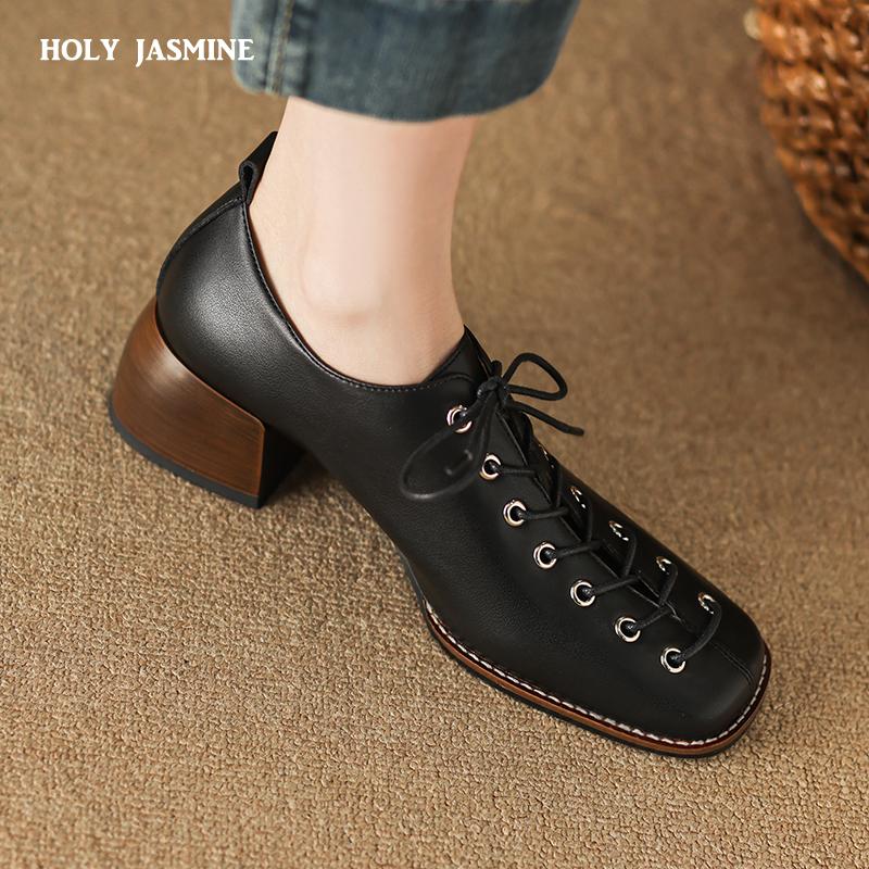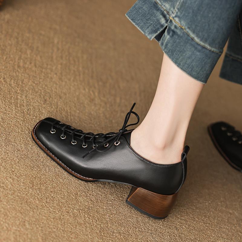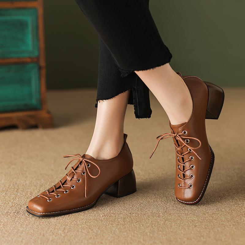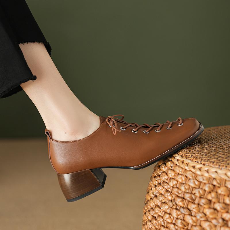 Мода Мода Высокий каблук Квадратный носок Женские туфли-лодочки Натуральная кожа Лаконичные Офисные Женские Повседневные Туфли на шнуровке Женские 2025 Весна Лето