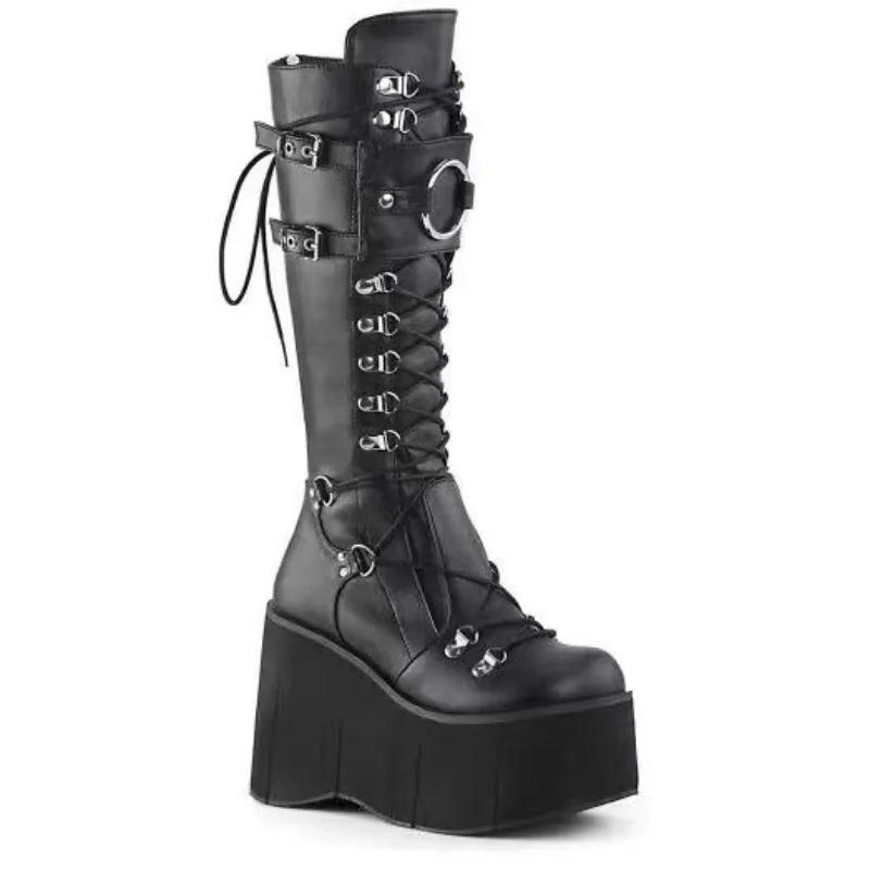 Модные ботфорты на танкетке для женщин, готическая обувь, ботфорты выше колена, косплей, женские ботинки на высокой платформе, новые ботинки на высоком каблуке, женские ботинки, боты