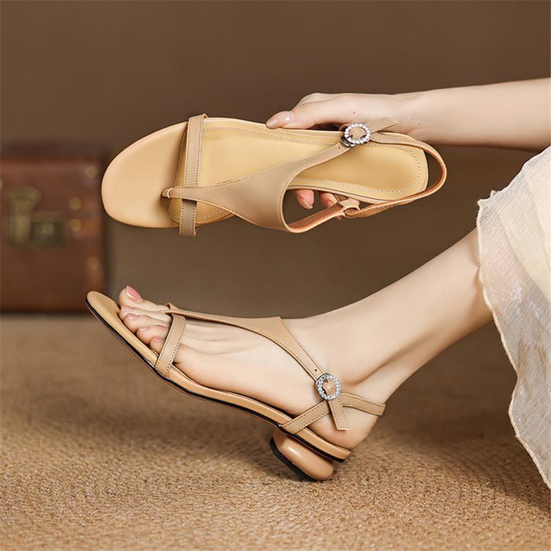 Модные новые летние сандалии из спилковой кожи, женская обувь с круглым носком, сандалии на низком каблуке для женщин, модные римские сандалии, обувь на массивном каблуке