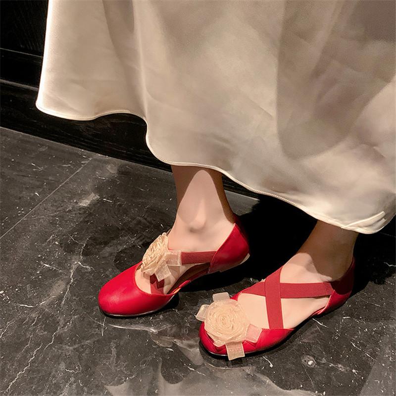 Модные новые летние сандалии из коровьей кожи, женская обувь, сандалии с круглым носком для женщин, модные сандалии с закрытым носком и цветами, сандалии на низком каблуке, балетки