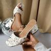 Модные кружевные босоножки на высоком каблуке для женщин 2025 лето легкие удобные тапочки женские большого размера на тонком каблуке с квадратным носком