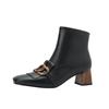 Мода 2025 Новая Женская Обувь Бахрома Женские Ботинки Зимние Ботильоны Zapatos De Mujer Женские Ботинки Квадратный Носок Натуральная Кожа Черные Ботинки