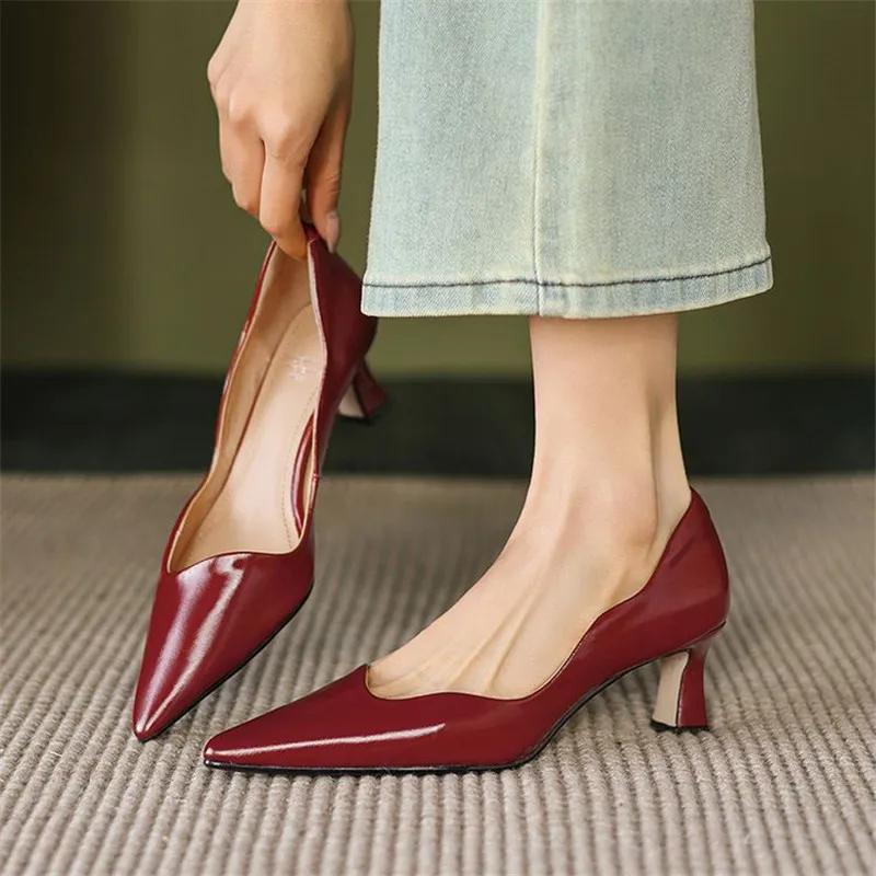 Модные новые весенне-летние туфли из спилковой кожи для женщин с острым носком, женские туфли-лодочки, туфли на высоком каблуке, модные лаконичные женские туфли