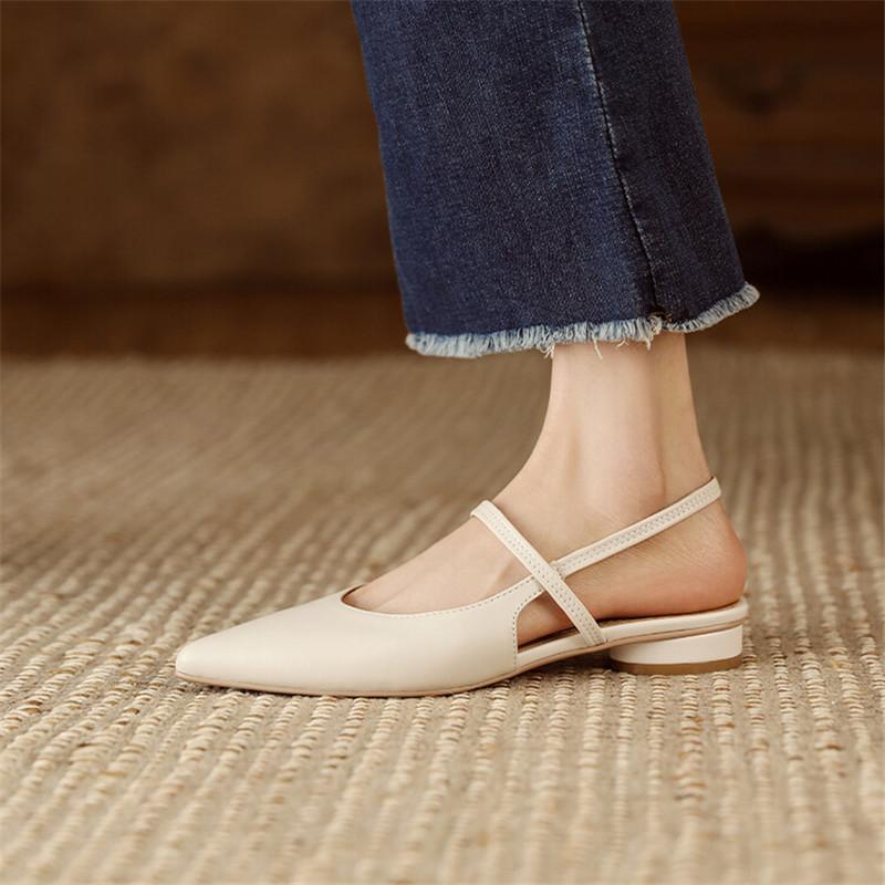 Модные летние сандалии из овчины, женская обувь с острым носком на низком каблуке, женские туфли-лодочки, сандалии с закрытым носком из натуральной кожи для женщин, ручная работа