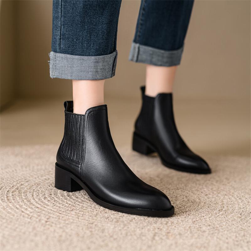Мода НОВЫЙ Осень Зима Натуральная Кожа Женские Ботинки Модные Короткие Ботинки Круглый Носок Массивная Обувь для Женщин Ботильоны Челси