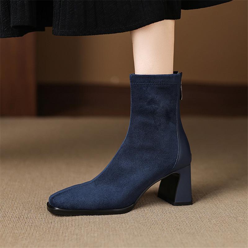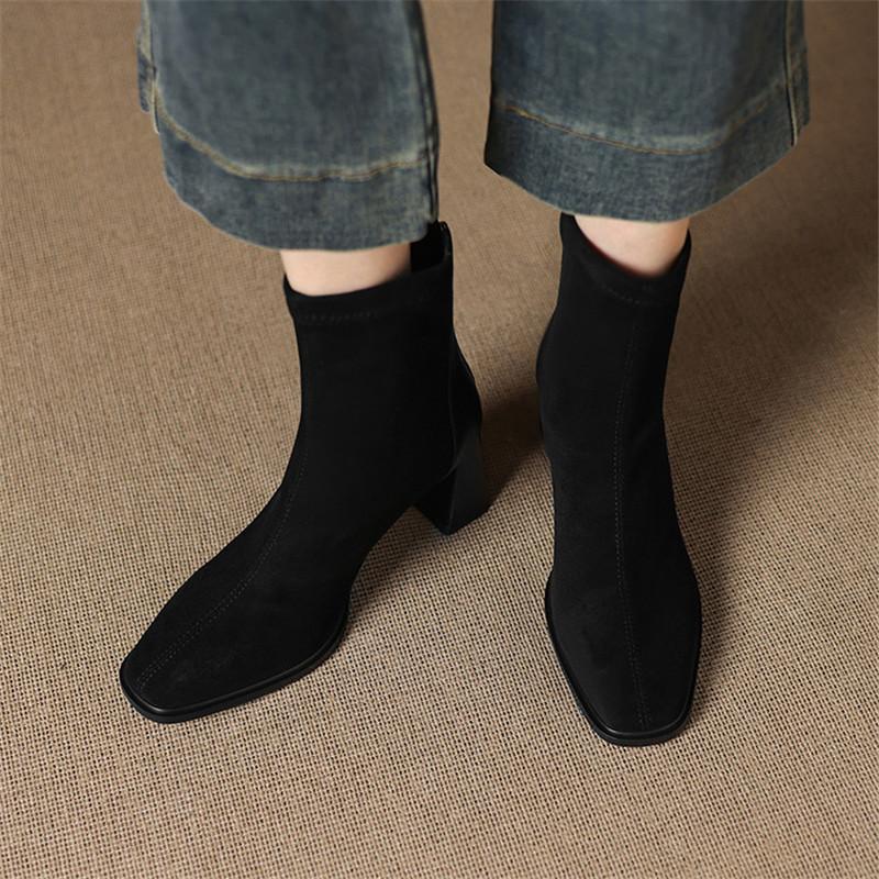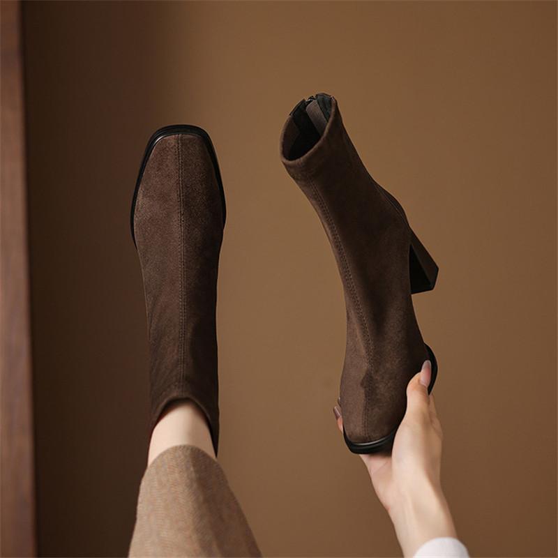 Модные новые осенне-зимние женские ботинки с квадратным носком, женские модные ботинки, женские универсальные ботильоны на высоком каблуке, облегающие ботинки