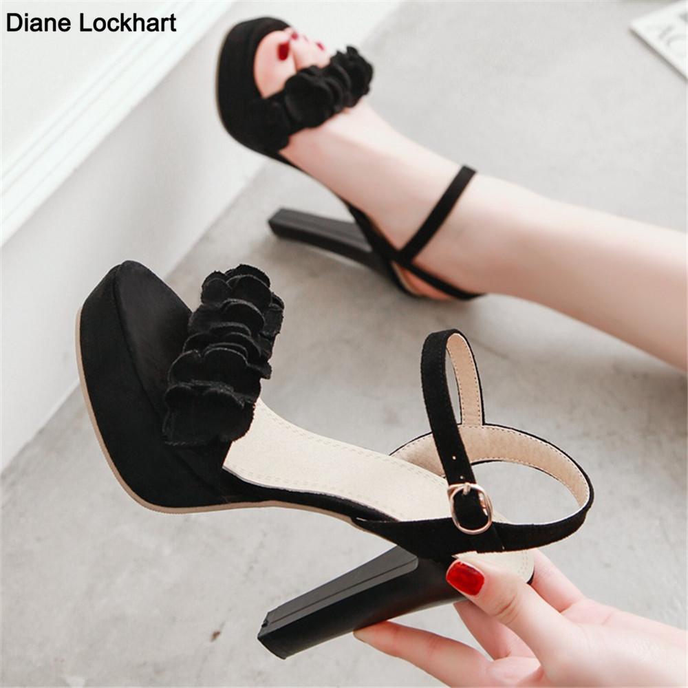 Fashion 2025 New Spring Summer Women Ankle Strap Buckle Platform Sandals Ladies Shoes High Heels Flock Fashion Sandalias Plus Size 32-43