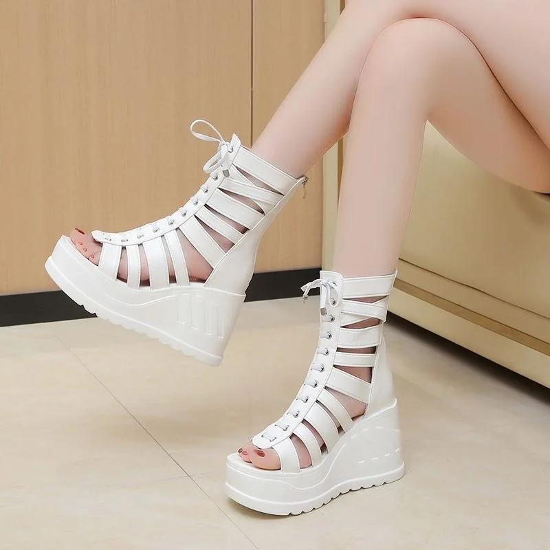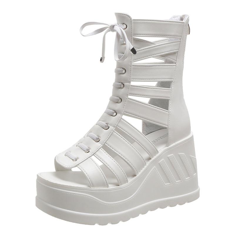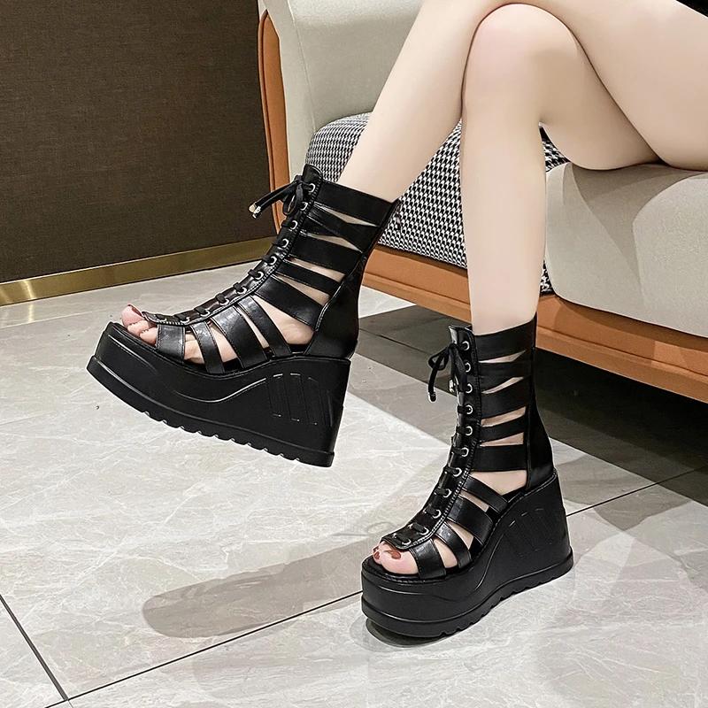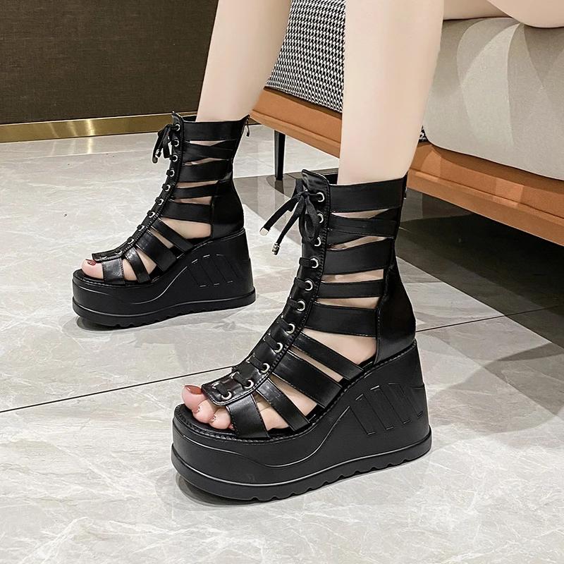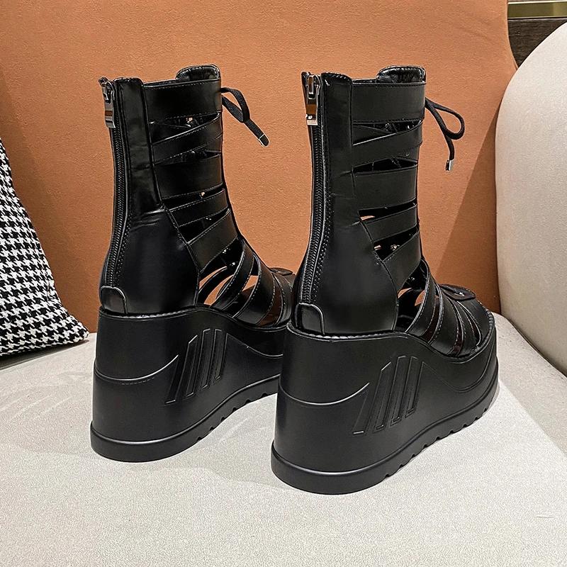 Модные женские сандалии-клинья на высоком каблуке, готические панк летние туфли на платформе, женские удобные босоножки на ремешках, на молнии и с пряжкой, модные повседневные женские ботинки