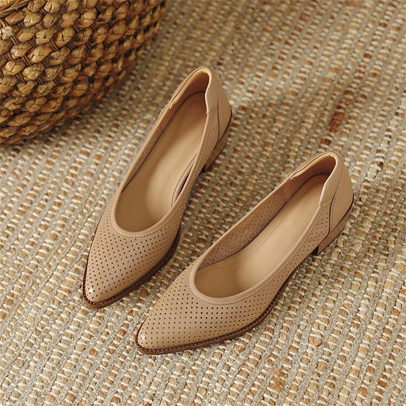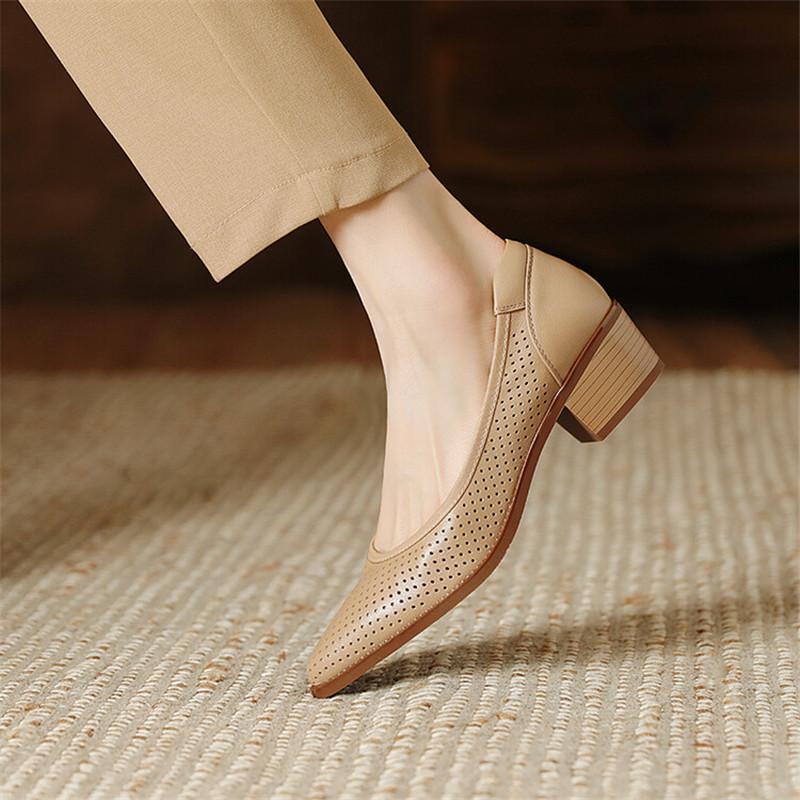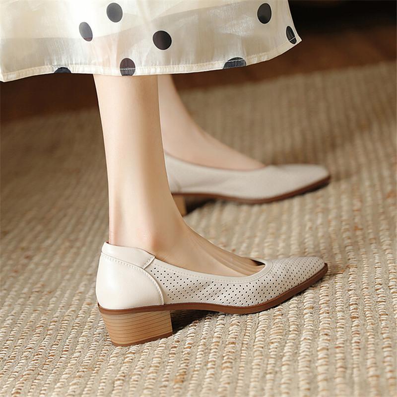 Мода 2025 Новая Мода Ажурные Женские Туфли-Лодочки Острый Носок Летняя Обувь Массивный Каблук Обувь из Натуральной Кожи для Женщин Zapatos De Mujer