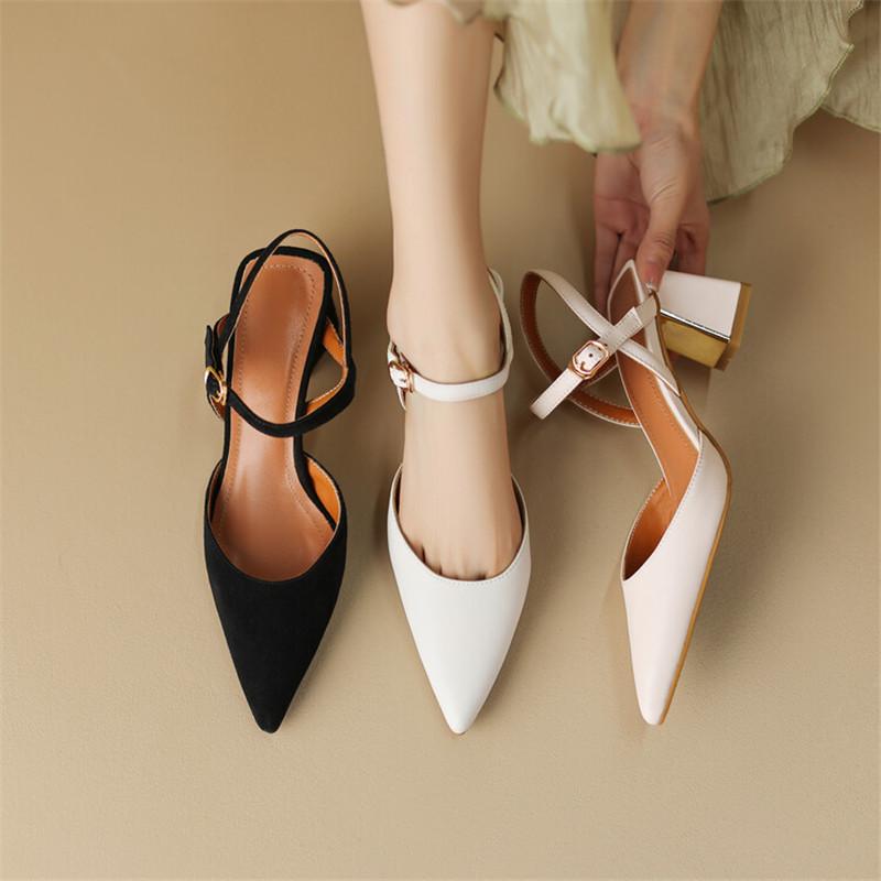 Модные новые летние сандалии из овчины, женские сандалии с острым носком и ремешком сзади, туфли на массивном каблуке для женщин, повседневная обувь, zapatos de mujer