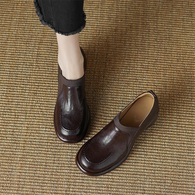 Мода Новая Осень Натуральная Кожа Женские Туфли Мода Круглый Носок Обувь для Женщин Массивный Каблук Лоферы Zapatos De Mujer Женская Обувь Коричневый