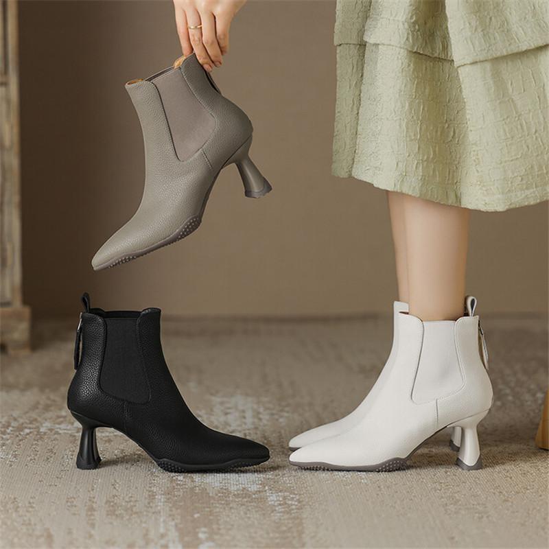 Модные Новые Осенне-Зимние Женские Ботинки Кожаные Короткие Ботинки Модные Ботинки с Острым Носком для Женщин Высокие Каблуки Женская Обувь Ботинки Челси