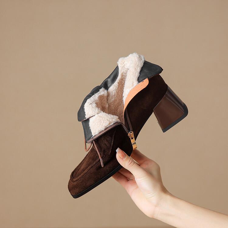 Модные Новые Осенне-Зимние Женские Туфли из Овчины Замши с Квадратным Носком, Ретро Ботильоны на Шнуровке для Женщин, Массивный Каблук, Высокий Каблук, Женские Ботинки