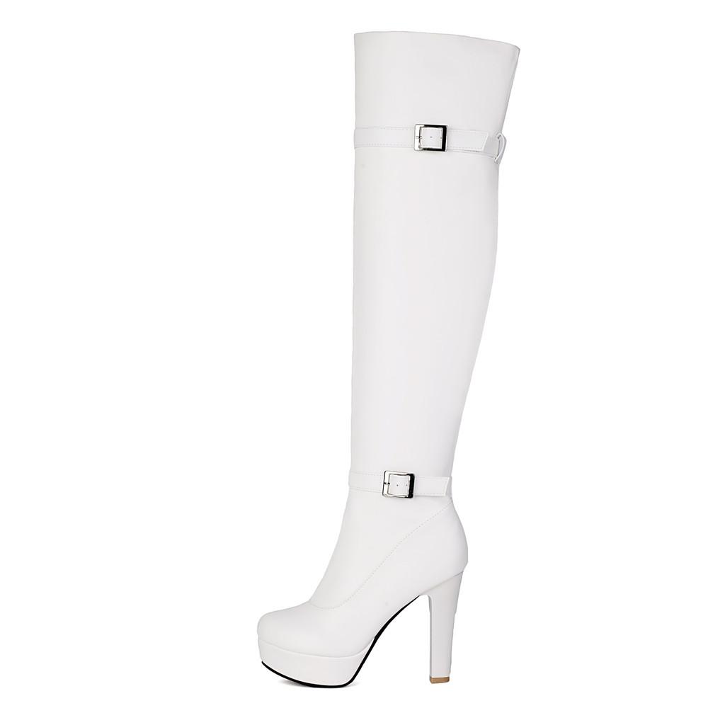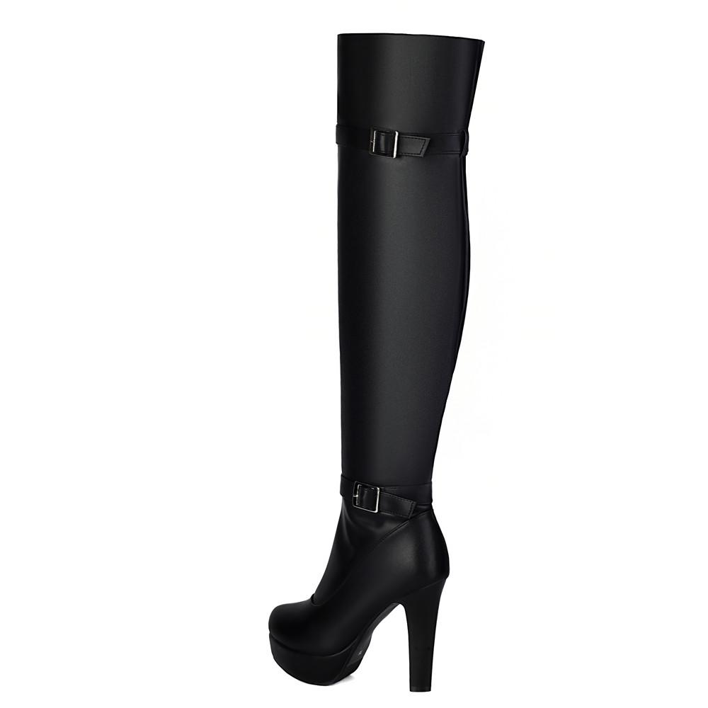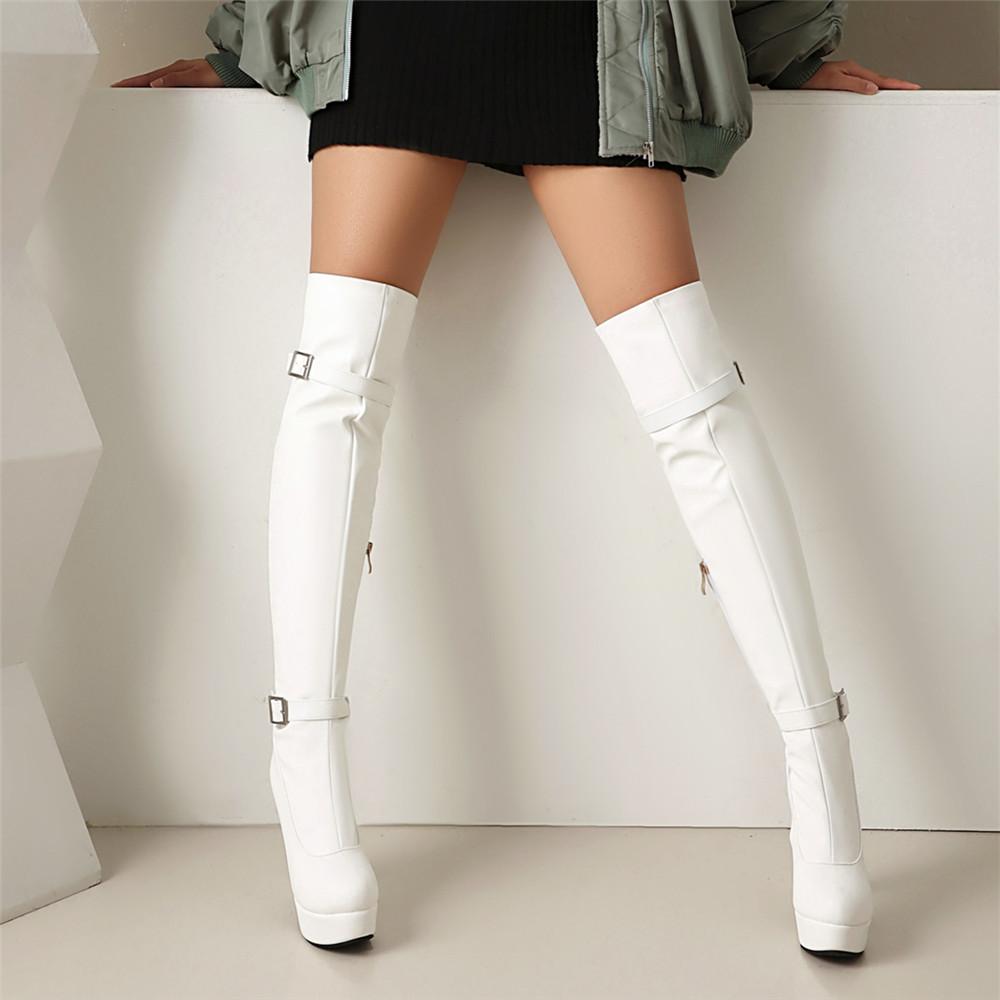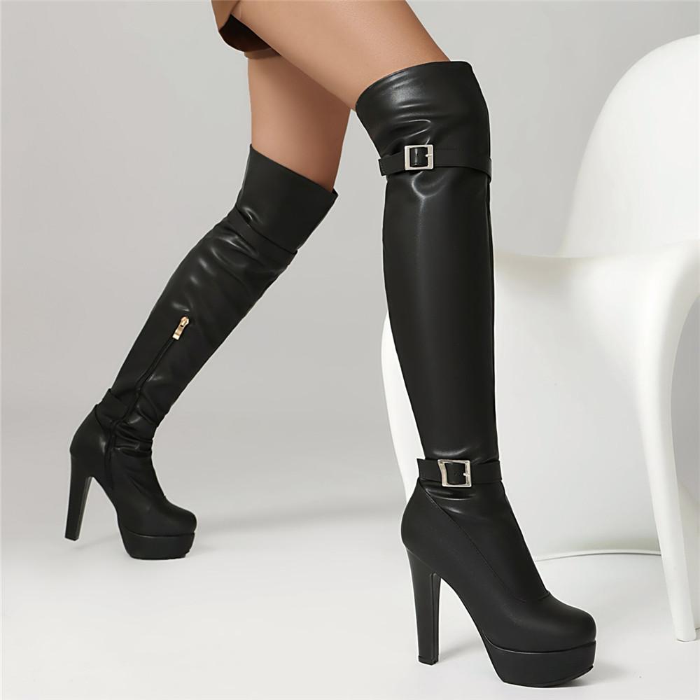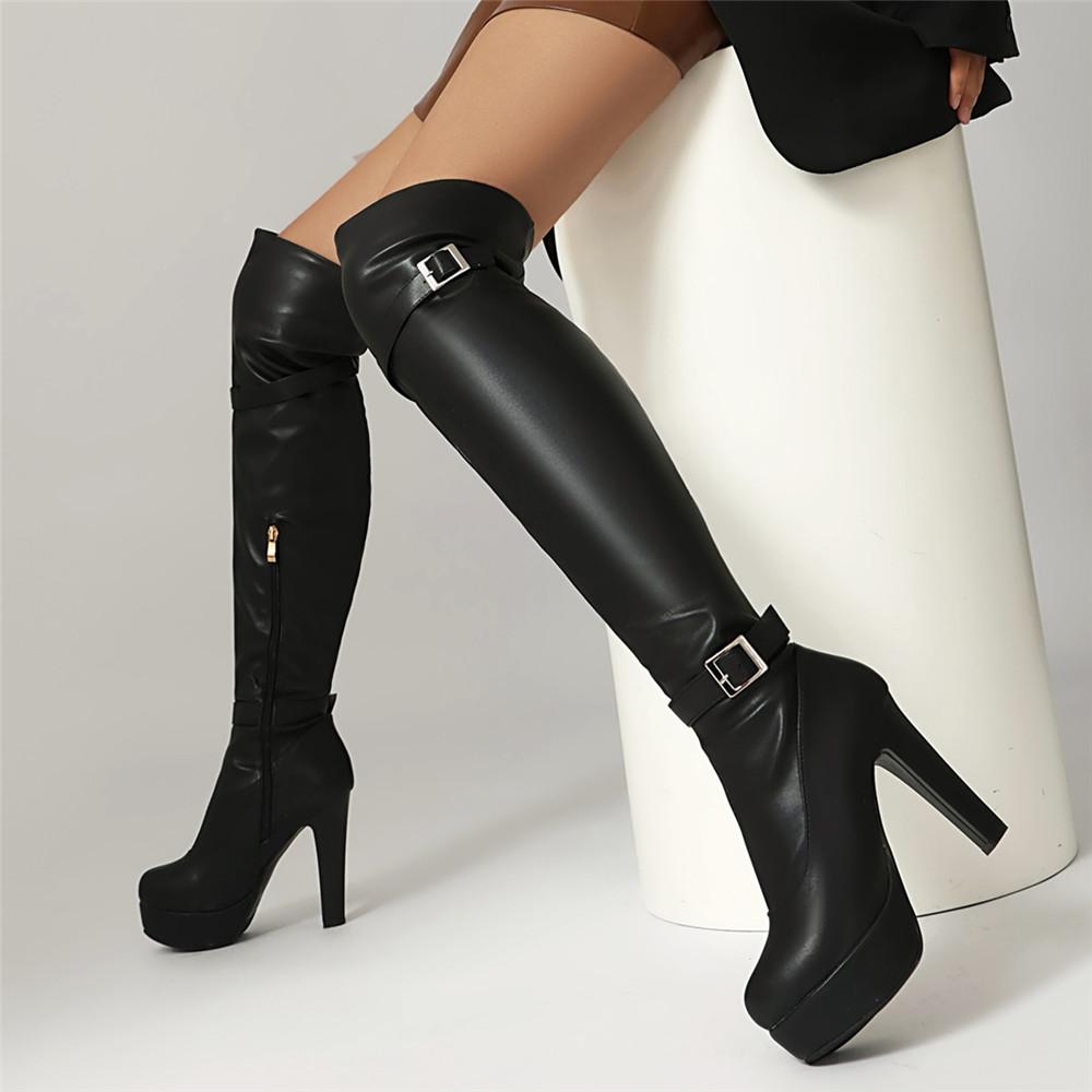 Модная обувь Женские ботинки Молния Пряжка Черные ботфорты Сексуальные женские Осенне-зимние Женские ботфорты до бедра Chaussures Botas Mujer