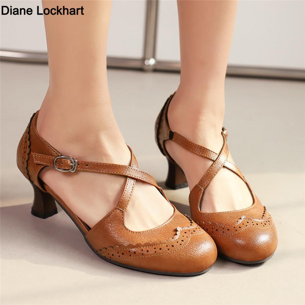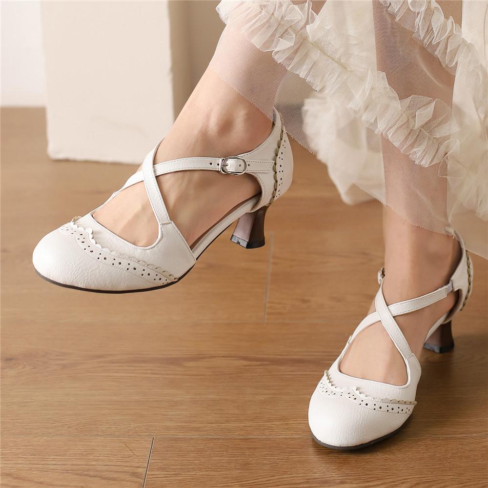 Модная женская обувь 2025 Туфли на высоком каблуке Весна Перекрестный ремешок Обувь на высоком каблуке Женские туфли с пряжкой Круглый носок Коричневый Желтый Черный Размер 32-48