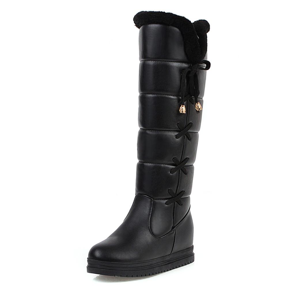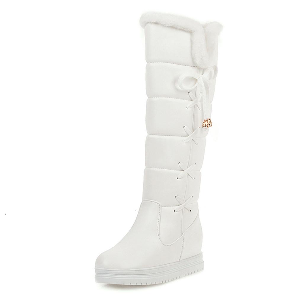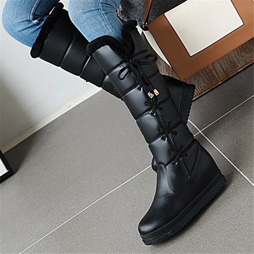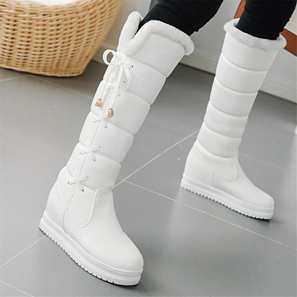 Мода 2025 Зимние Теплые Розовые Белые Снежные Сапоги Женская Обувь Низкий Каблук Сапоги до Колена Женские На Шнуровке Платформа Плюшевые Длинные Ботинки Mujer