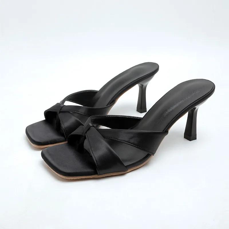Мода 2025 Лето Современные Женские Шлепанцы Лаконичный Квадратный Носок Тонкий Каблук Большой Размер Вечеринка Вьетнамки Элегантные Платье Шлепанцы Zapatos