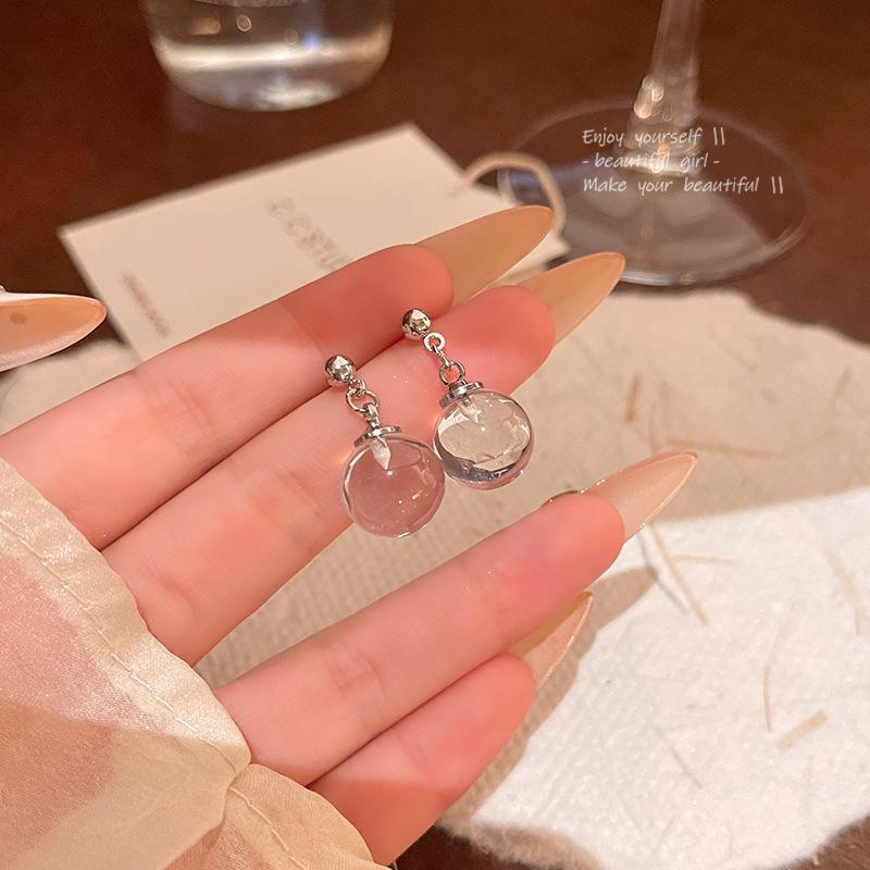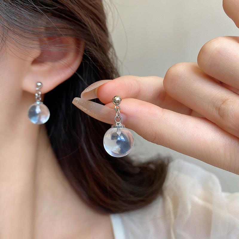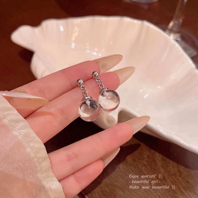 Корейский стиль Простота Продвинутое чувство Прозрачный хрустальный шар Подвеска Серьги для женщин