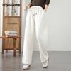 Женские теплые брюки больших размеров на осень-зиму, плотные, с высокой талией, белые, серые, повседневные, свободные, прямые, на кулиске, базовые, утепленные