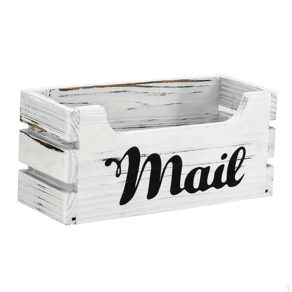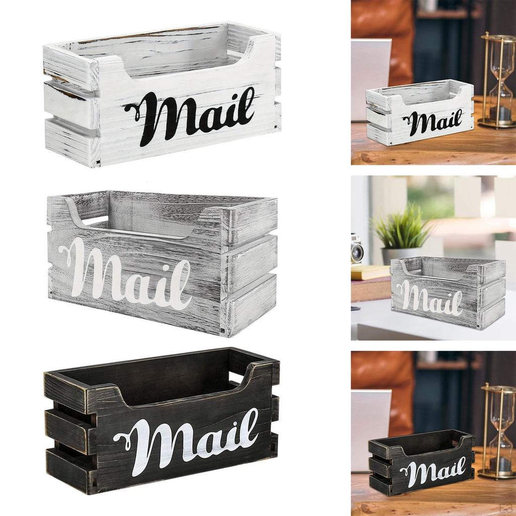 Wood Mail Holder Storage Box Tray for Countertop Farmhouse Tabletop Mailbox