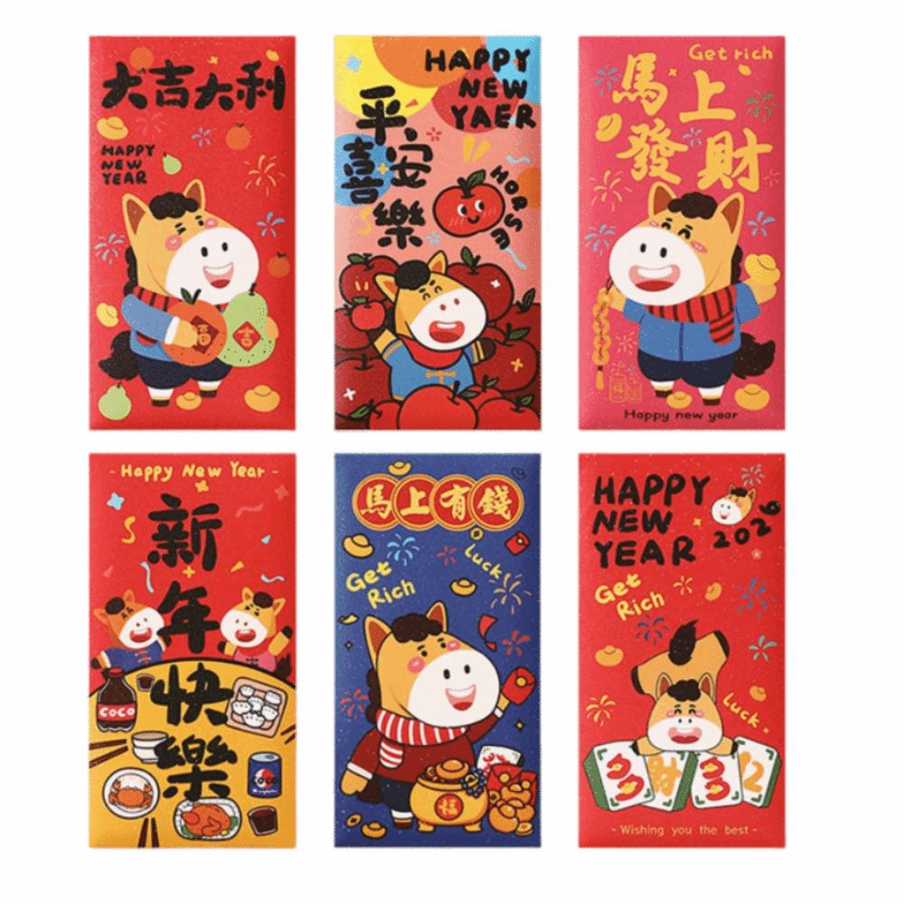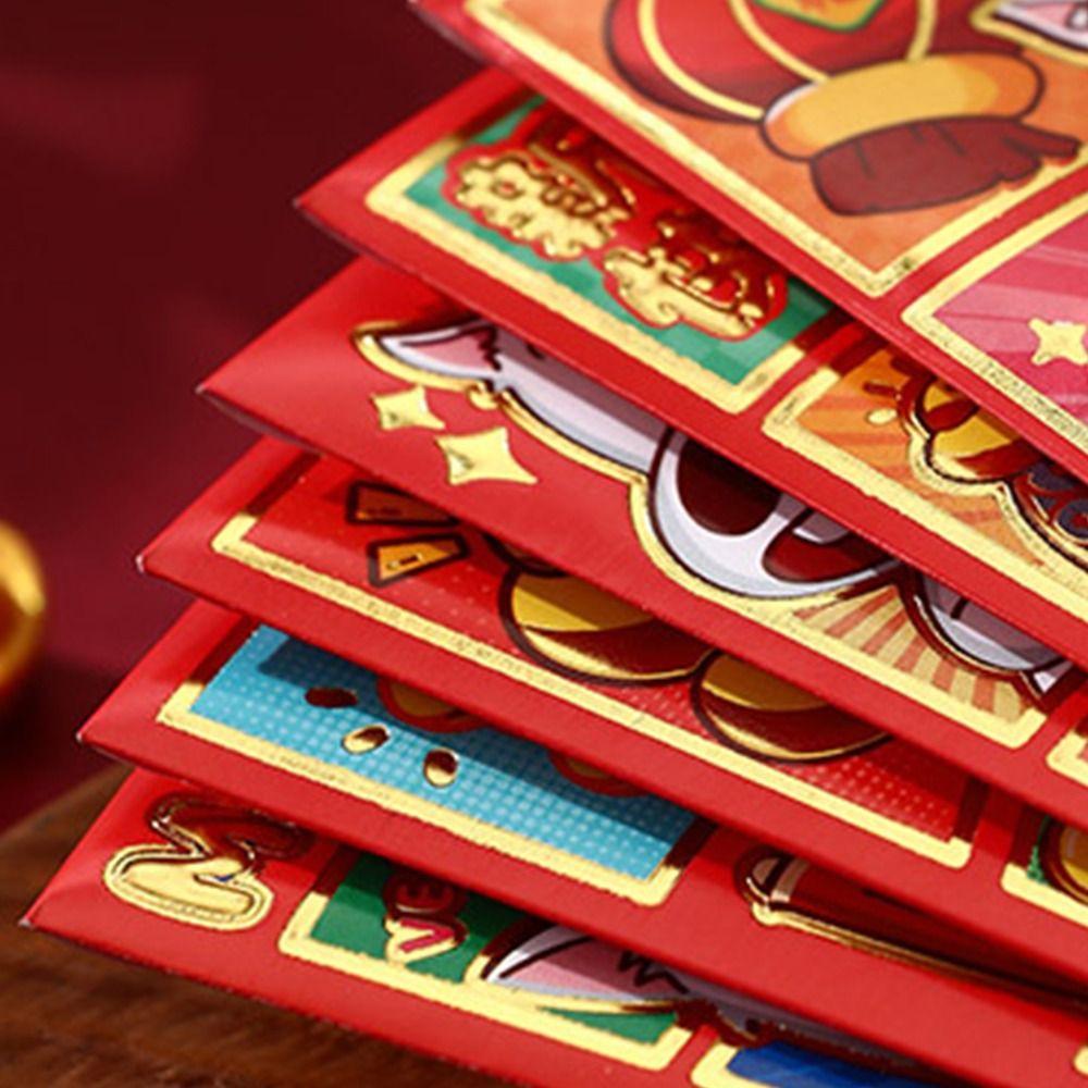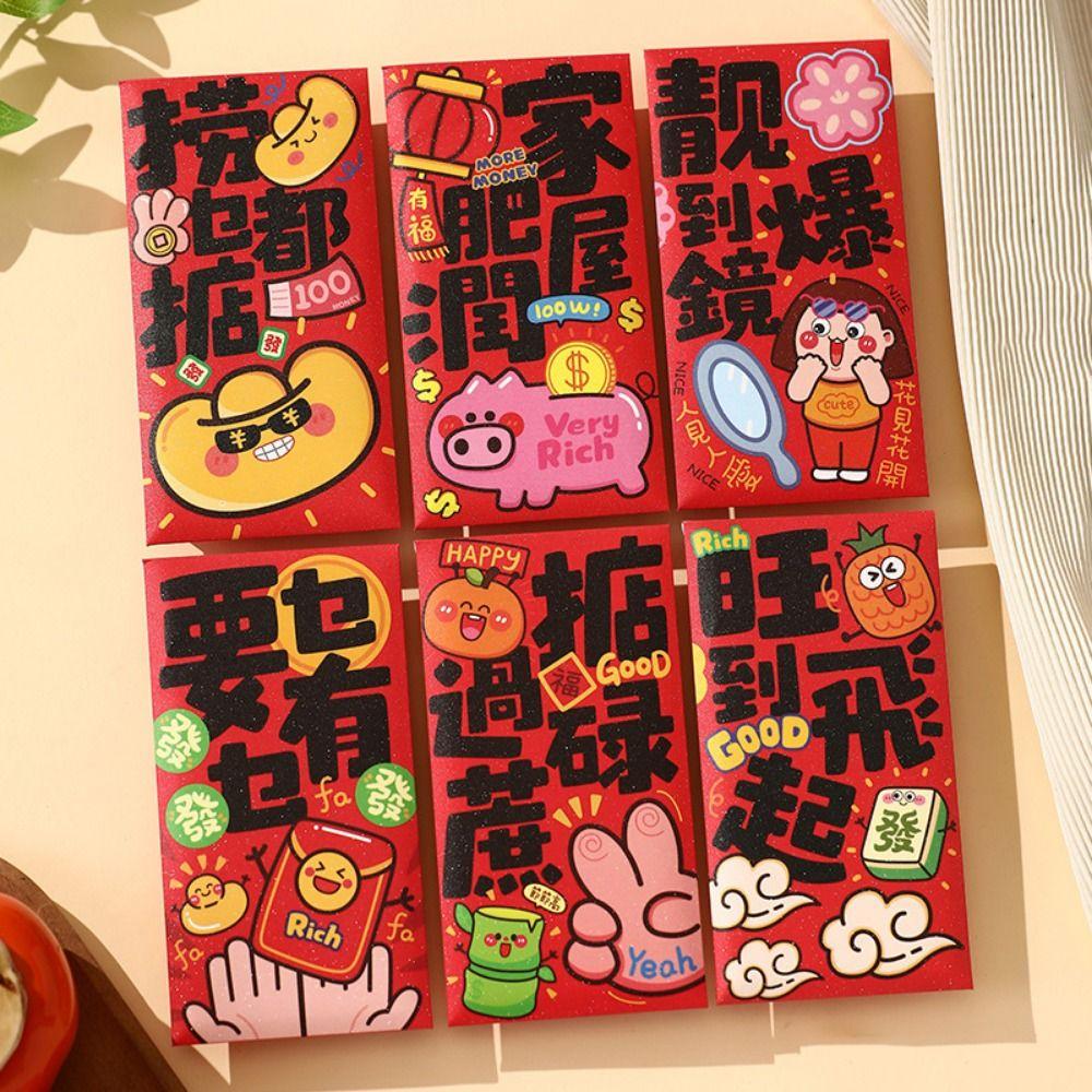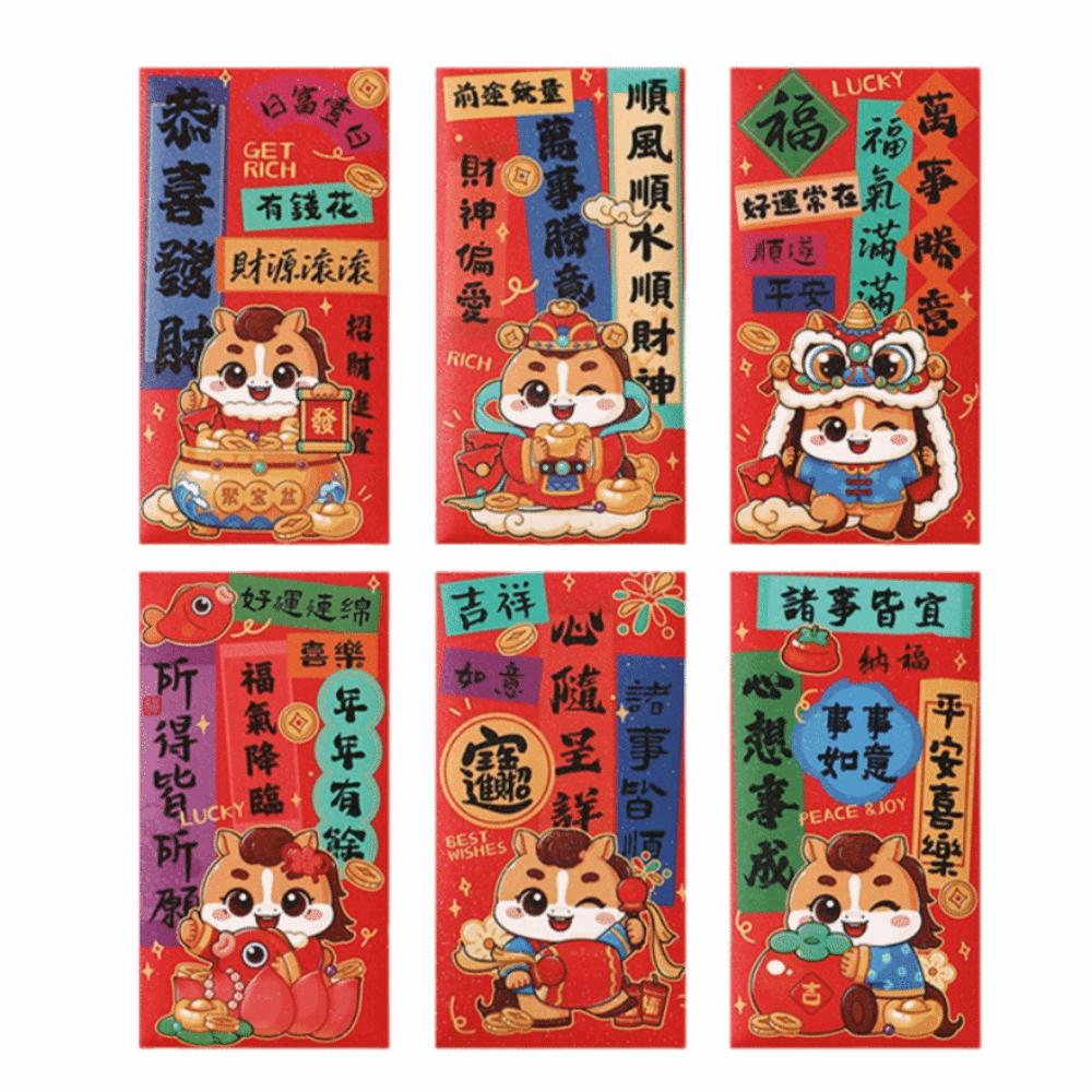 6Pcs/Set Traditional Chinese New Year Red Envelope Paper Lucky Money Bag Spring Festival