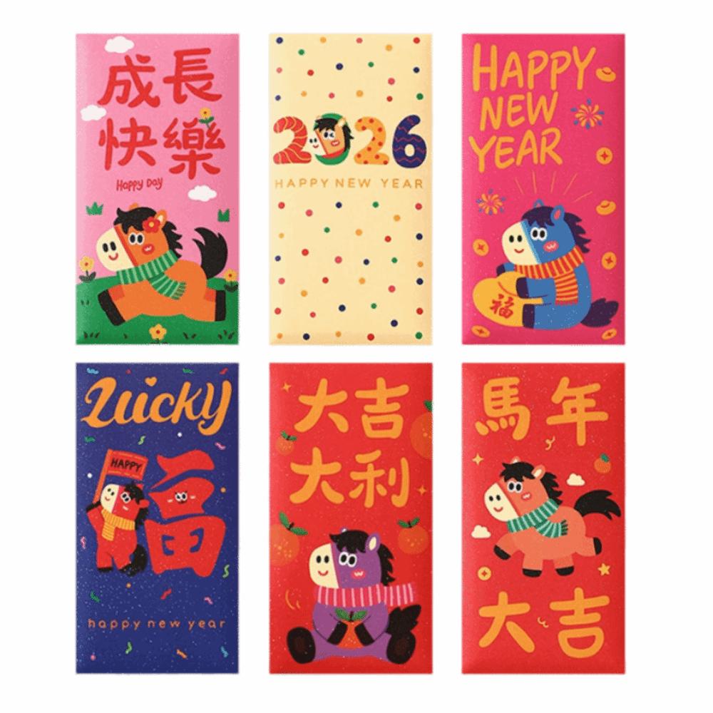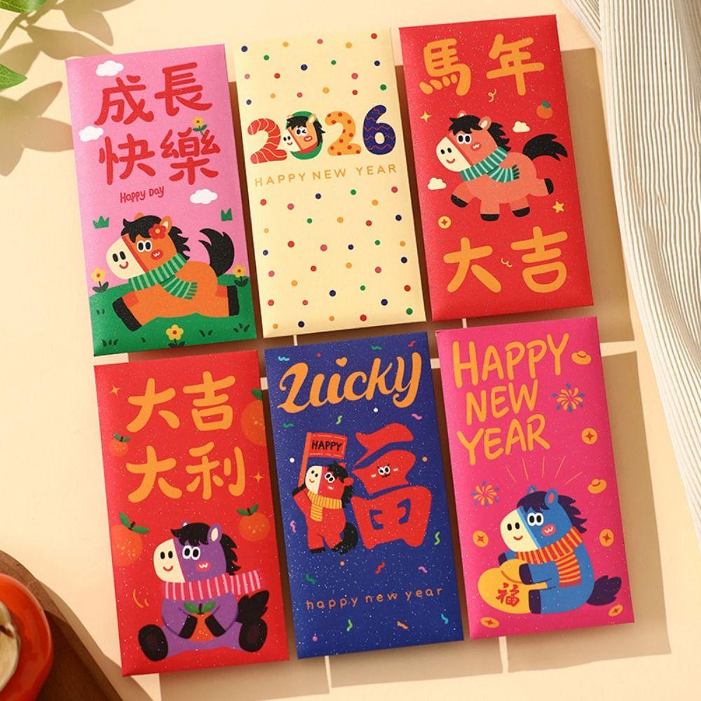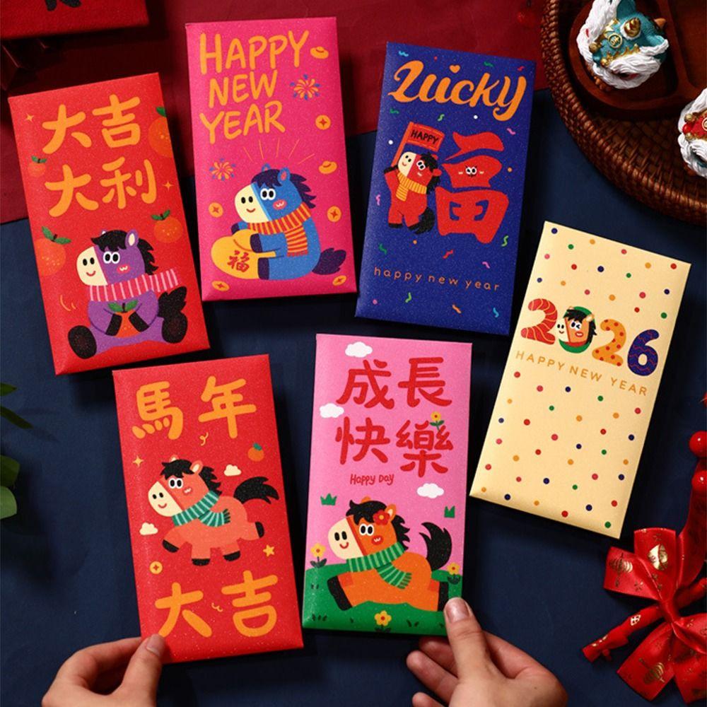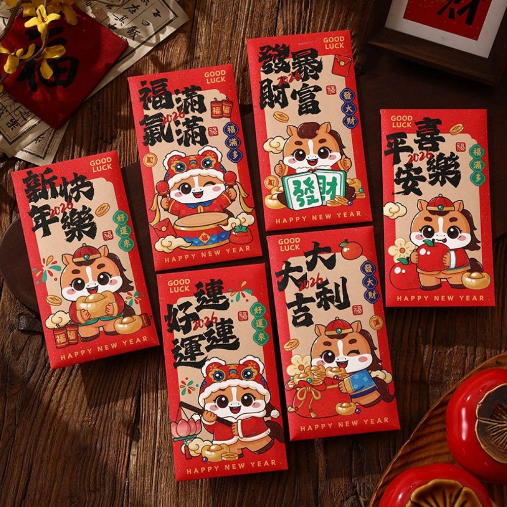 6Pcs/Set Traditional Chinese New Year Red Envelope Paper Lucky Money Bag Spring Festival