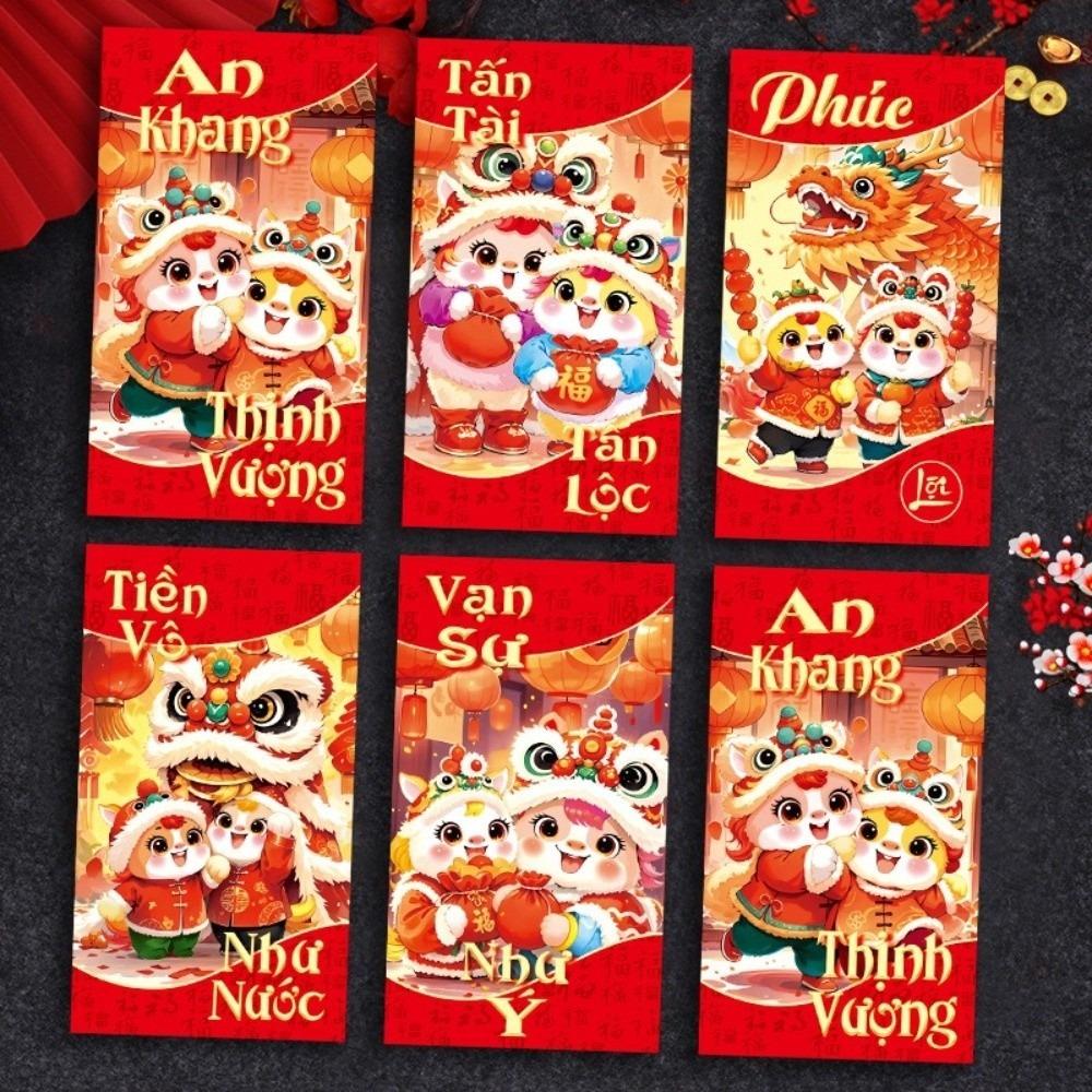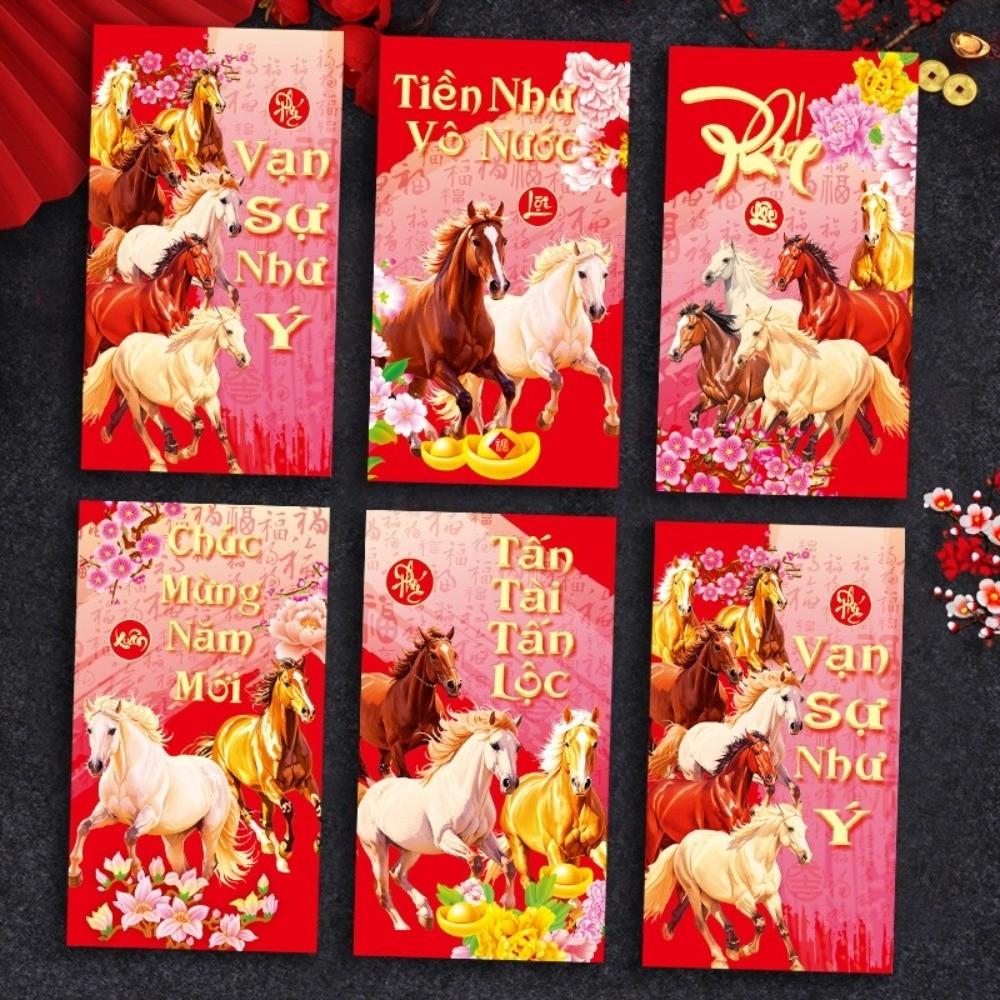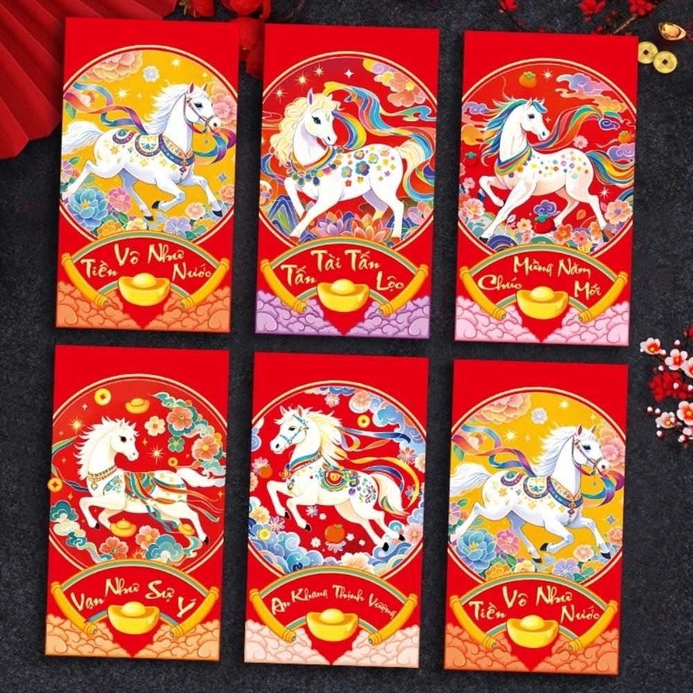 6 шт. Счастливые красные конверты Благословение Традиционный красный конверт на Праздник Весны Свадебное празднование