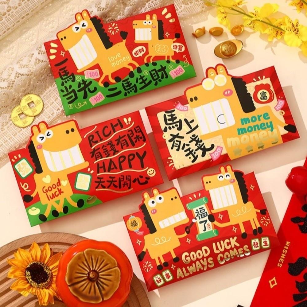 4 шт. Конверт Красный пакет Мультяшный Новогодний Красный конверт Благословение Хунбао Свадьба