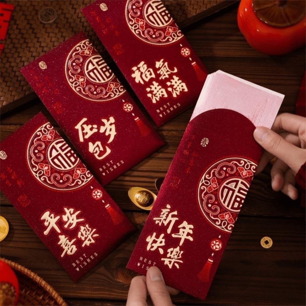 6pcs Hot Gold 2026 Horse Year Red Envelope Art Paper Gift Envelope Lucky Money Bags Birthday