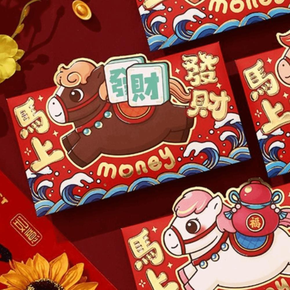 4pcs Horse Year Lucky Red Pocket Cartoon New Year Red Packet Blessing Red Envelope Bag Wedding