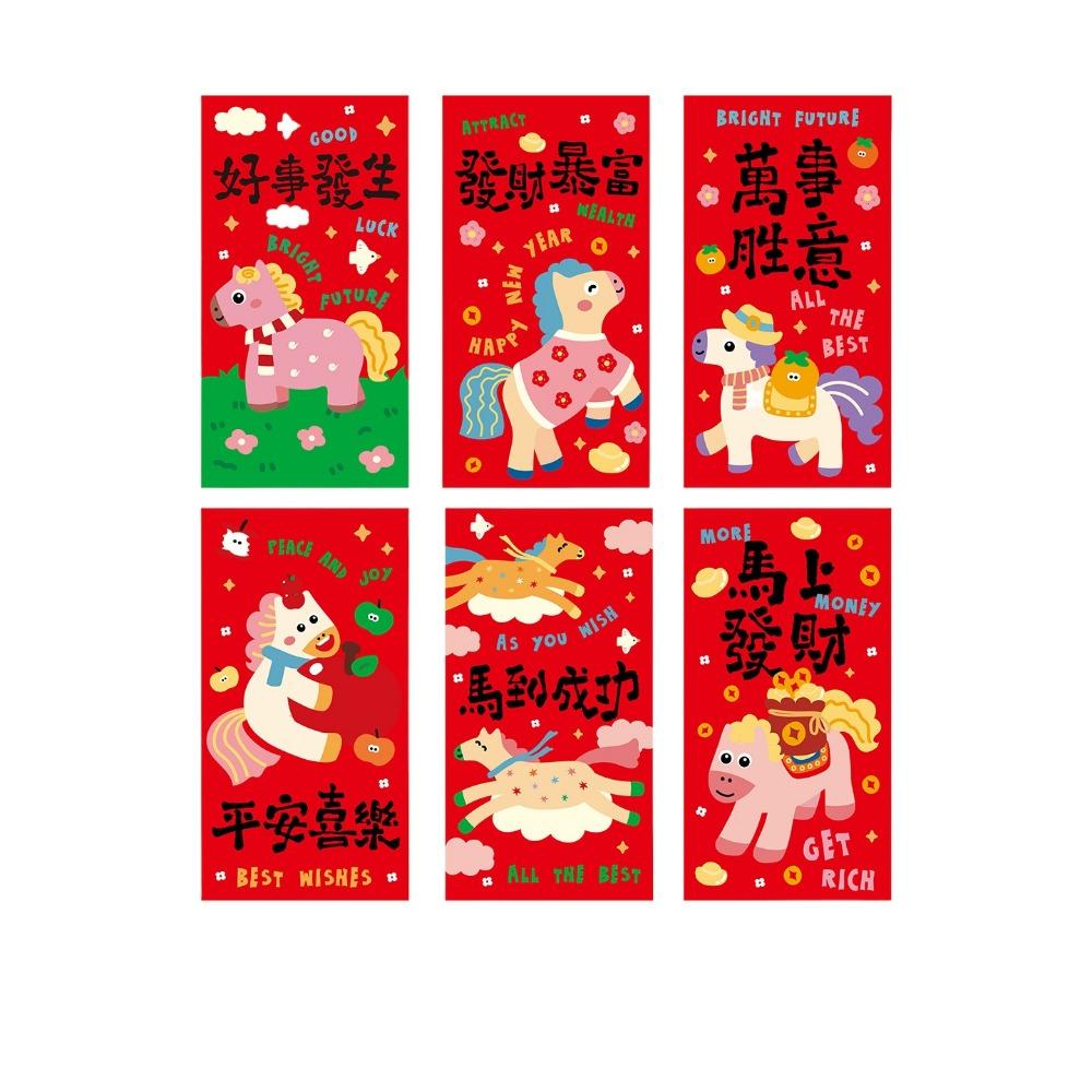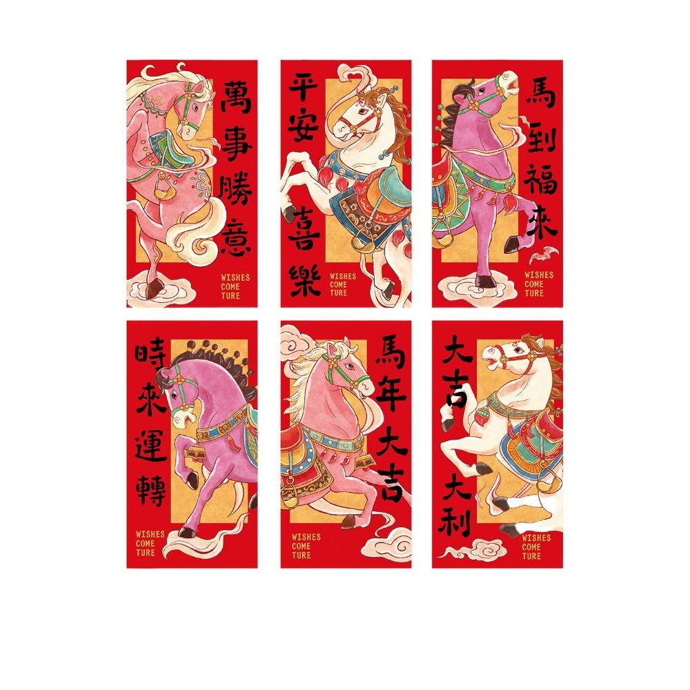 6 шт./набор Бумага 2026 год Лошади Красный конверт Традиционный конверт на Праздник Весны Праздник Весны
