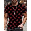 Летний топ с круглым вырезом и 3D-принтом в виде сердец, модная повседневная мужская футболка с коротким рукавом