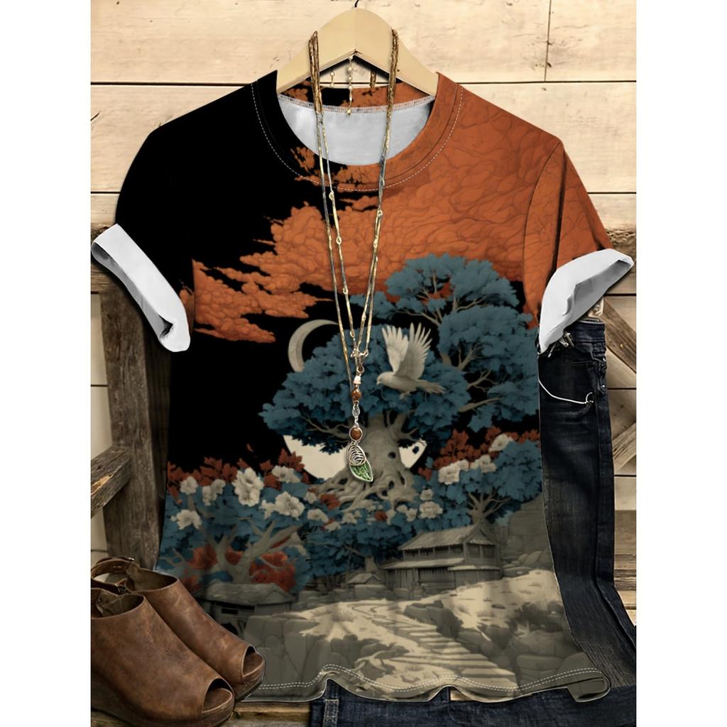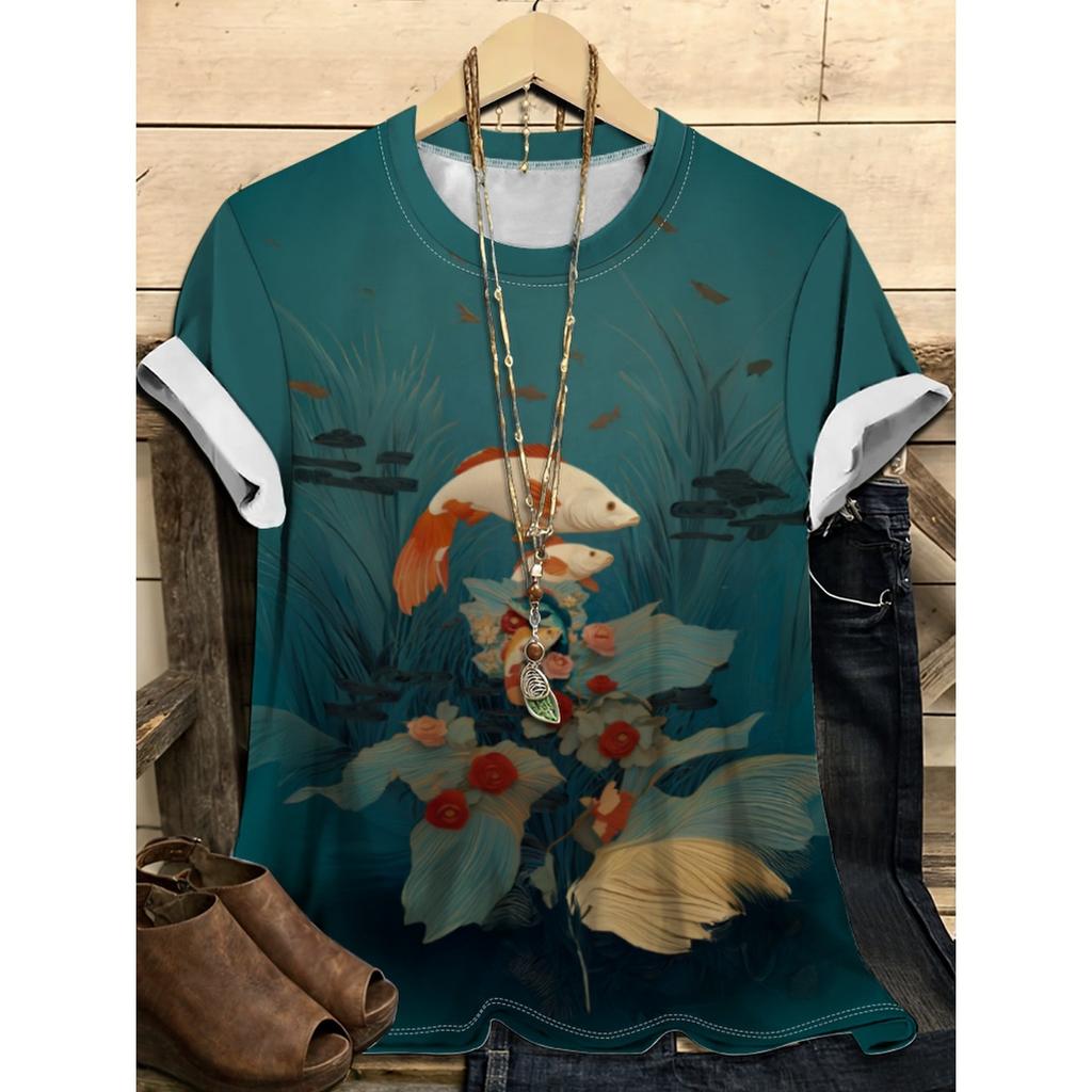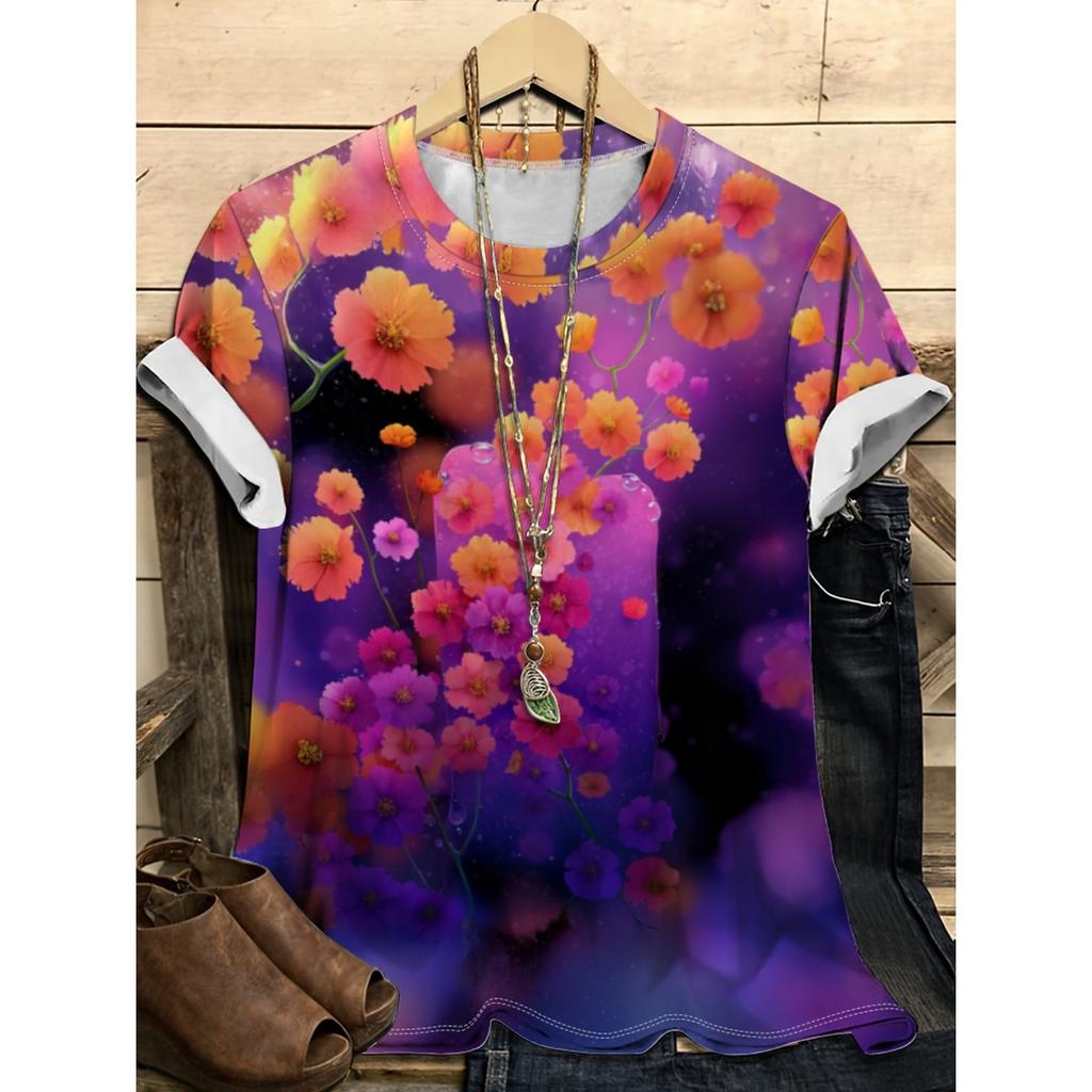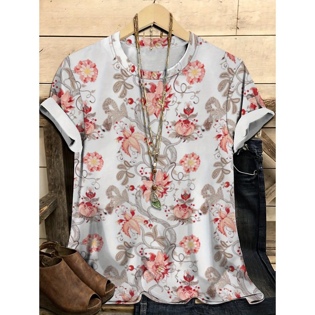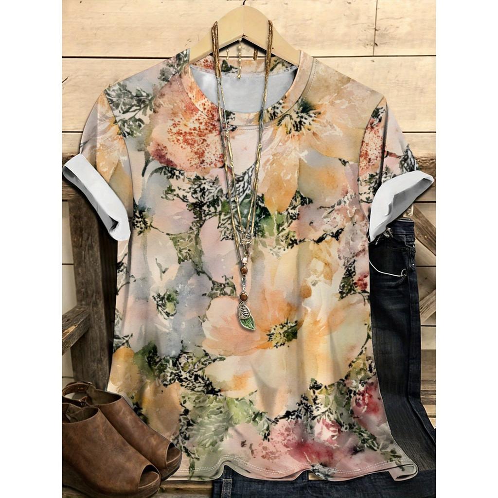 Летний топ с круглым вырезом и цветочным узором с 3D-принтом, модная повседневная женская футболка с коротким рукавом
