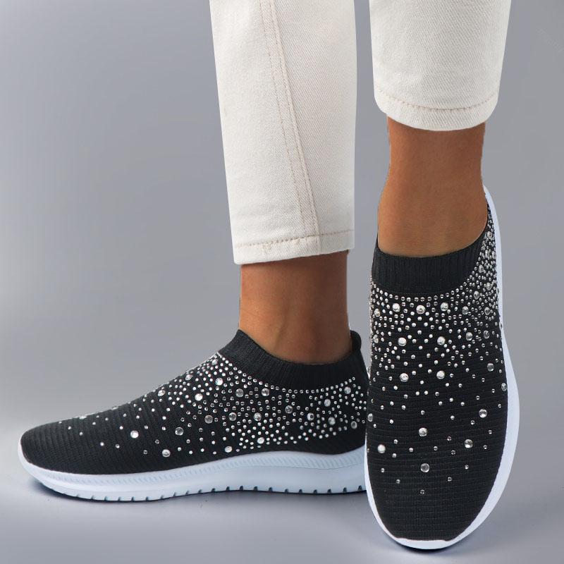Женские кроссовки на плоской подошве с кристаллами, дышащая повседневная обувь, спортивная обувь на открытом воздухе