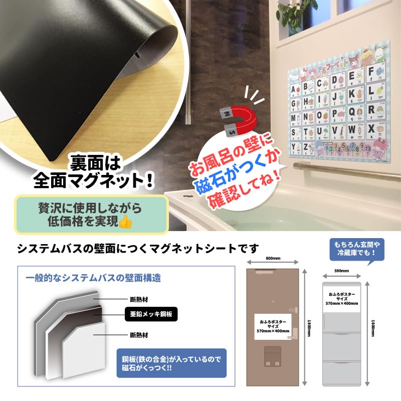 Постер с алфавитом с персонажами Sanrio, Постер для ванной, Магнитный лист [Magnet Park] Таблица ABC, Ученики начальной школы, Малыши, 40 см x 57 см, Постер ABC