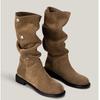 Модный бренд Мода 2025 Новые осенне-зимние ботинки с круглым носком, высокие сапоги из кожи, металлические рыцарские сапоги, сапоги с отворотом, панк-стиль