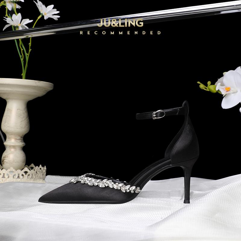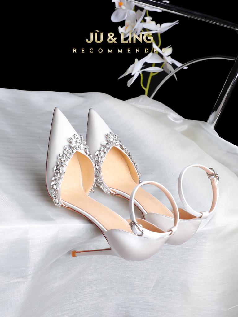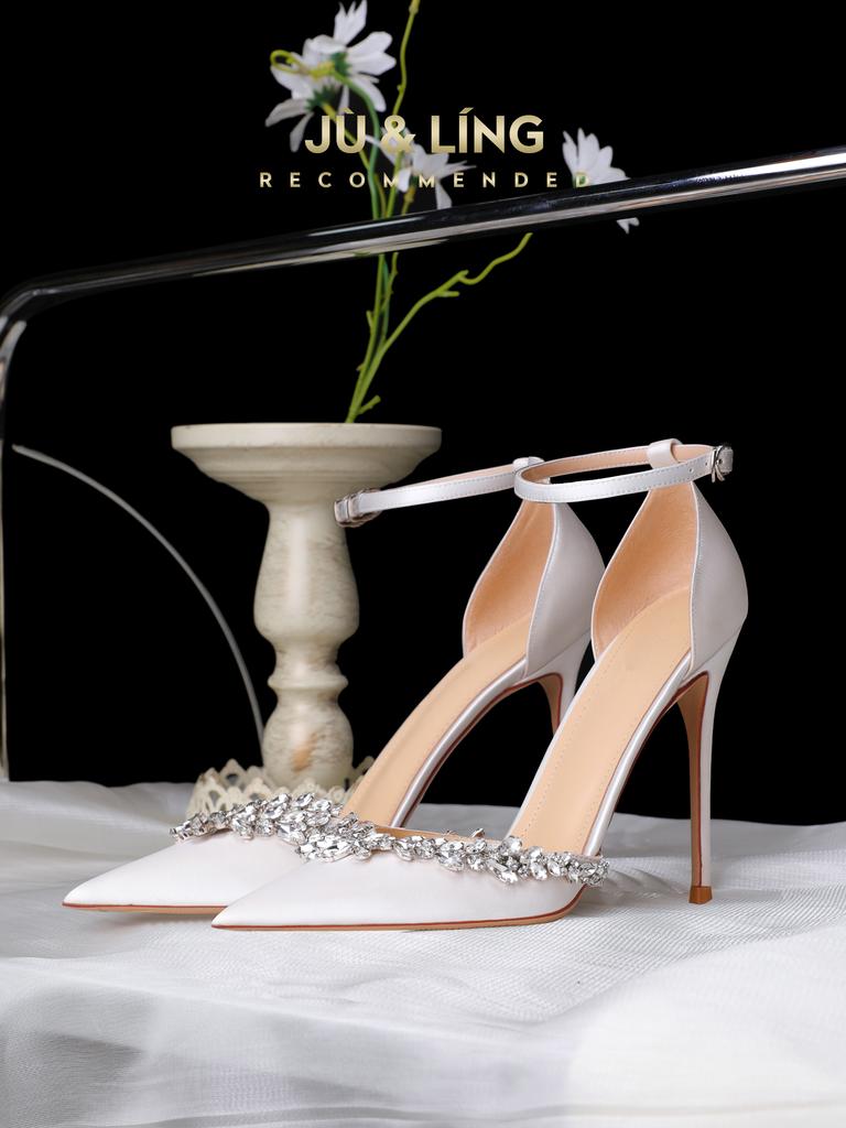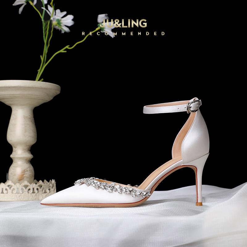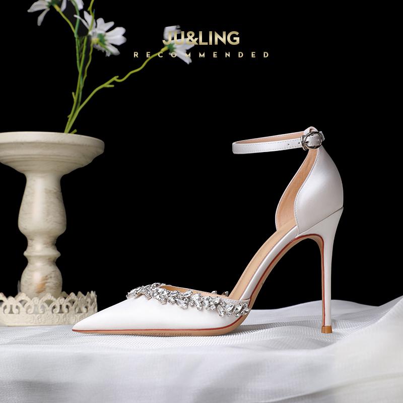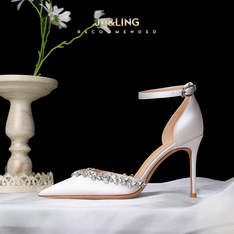 Модные белые шелковые туфли-лодочки с острым носком и стразами, новые свадебные туфли со стразами, туфли невесты, цельные сандалии с закрытым носком