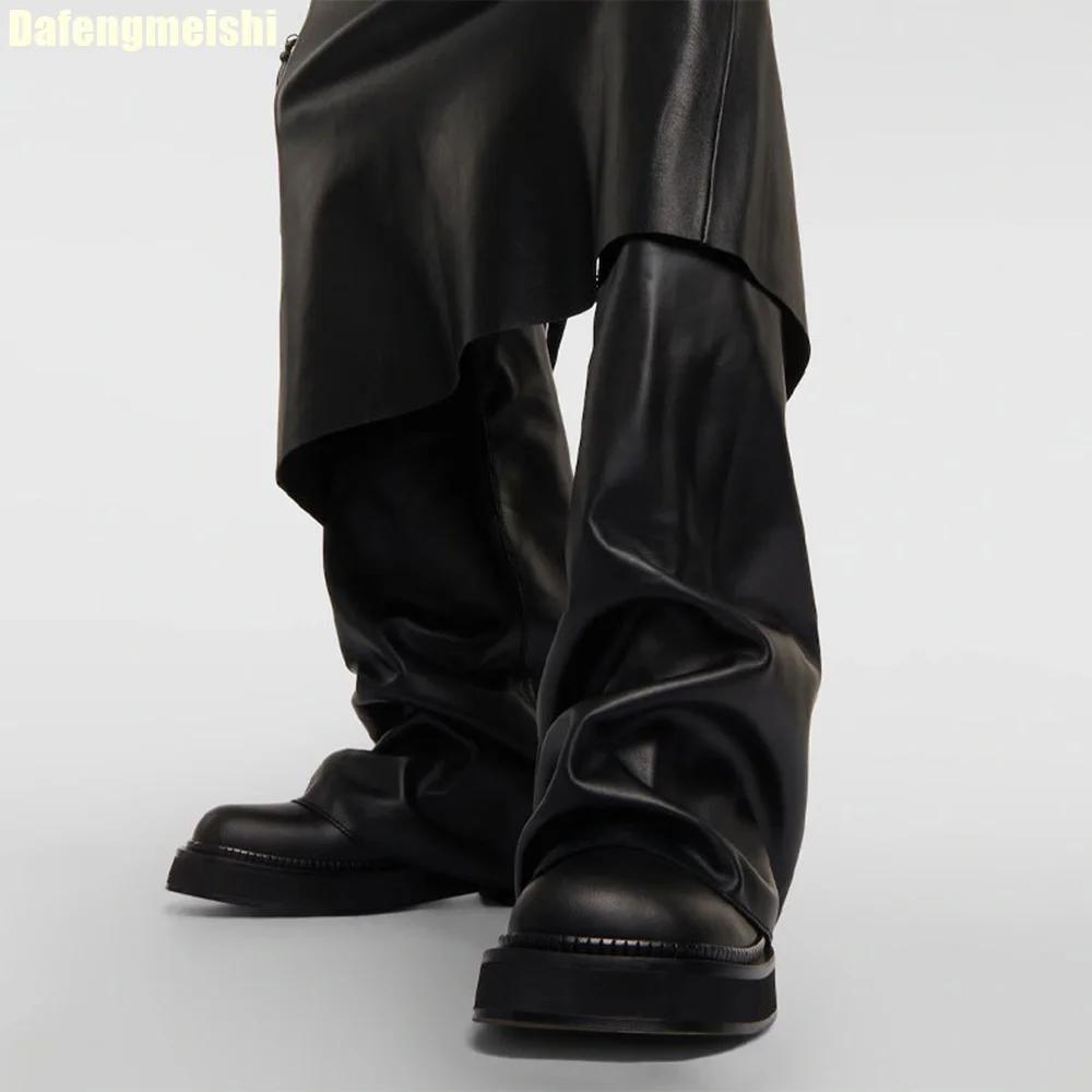 Мода 2025 Новые женские черные кожаные полусапоги со скрытой танкеткой, слипоны, модные сапоги, удобные для повседневной носки